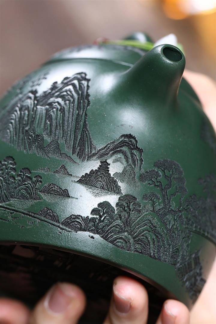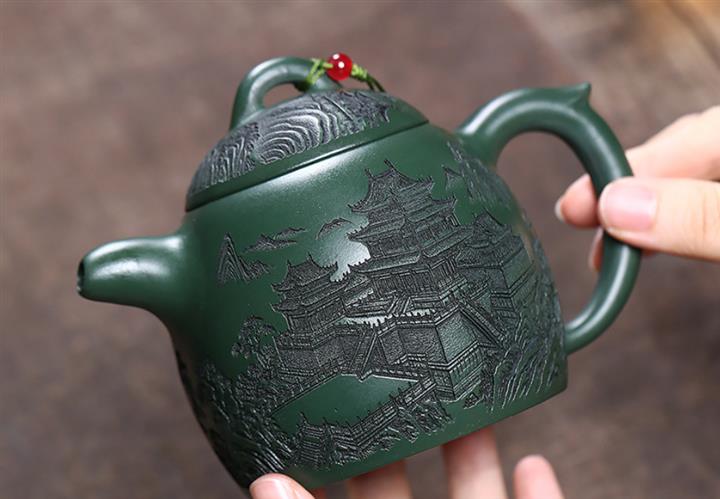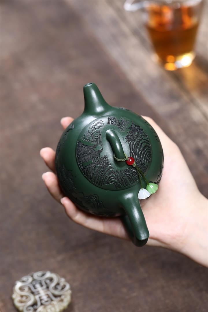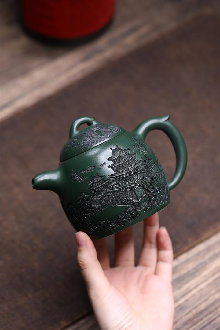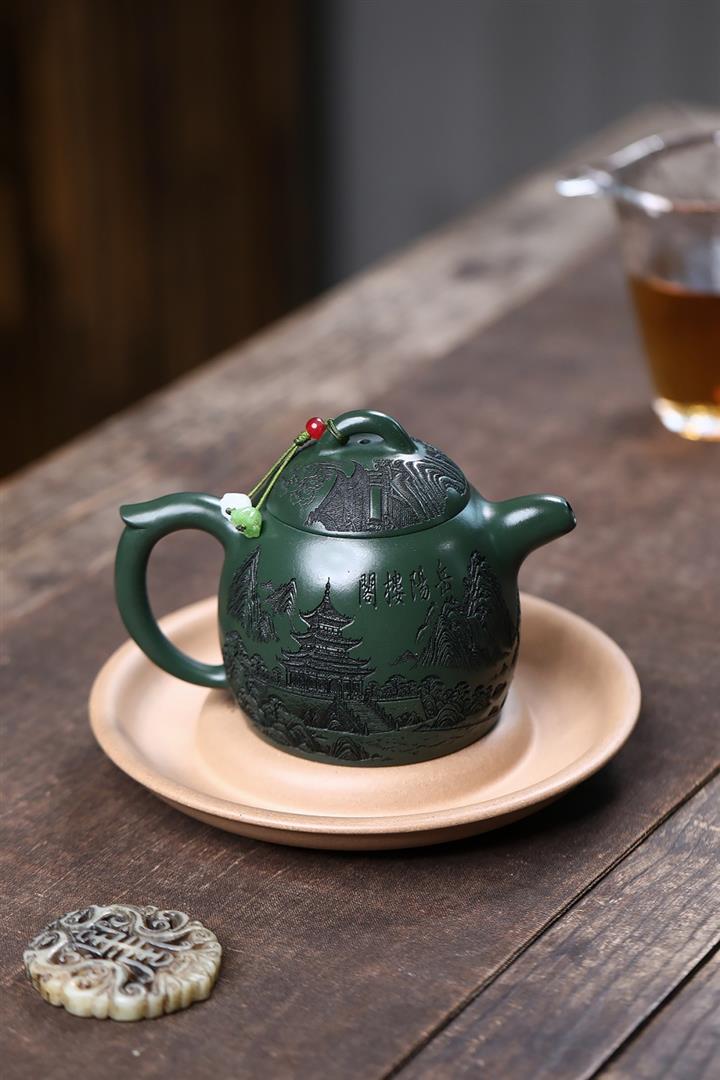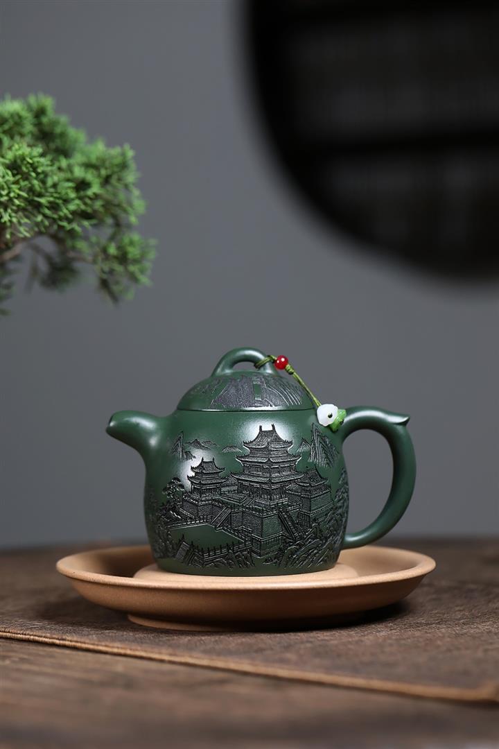 原礦綠泥文人山水漢瓦茶壺POT7498