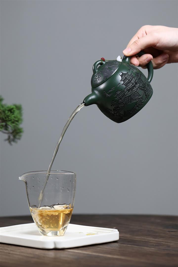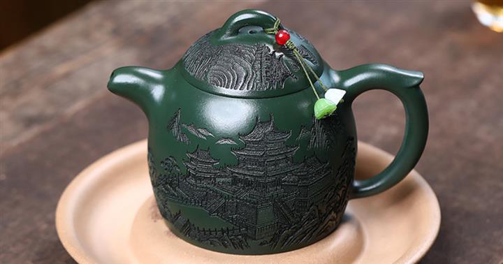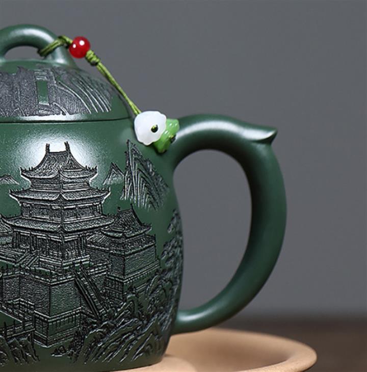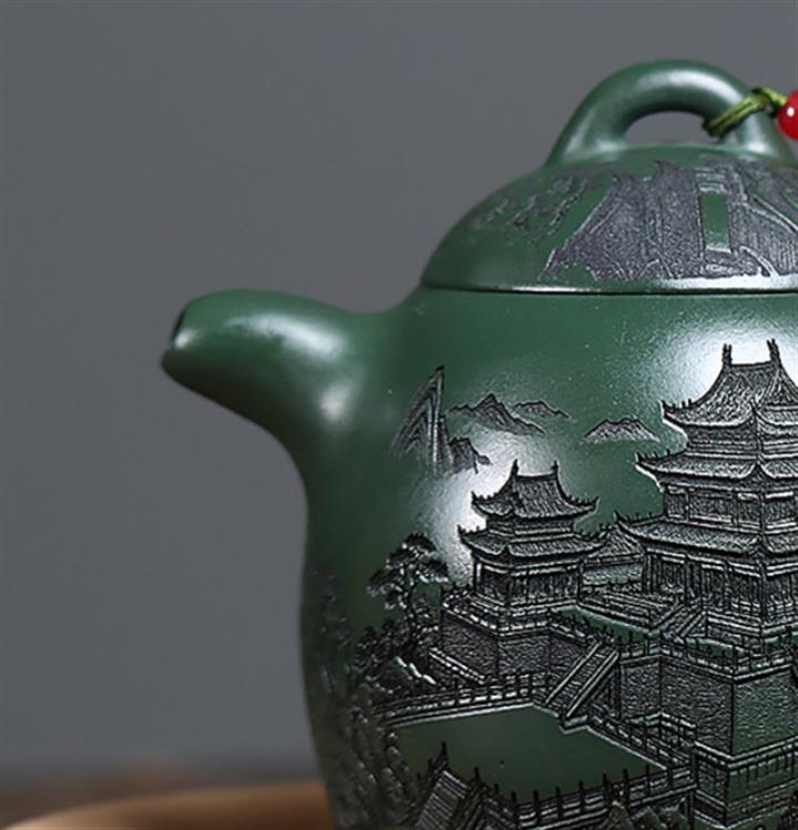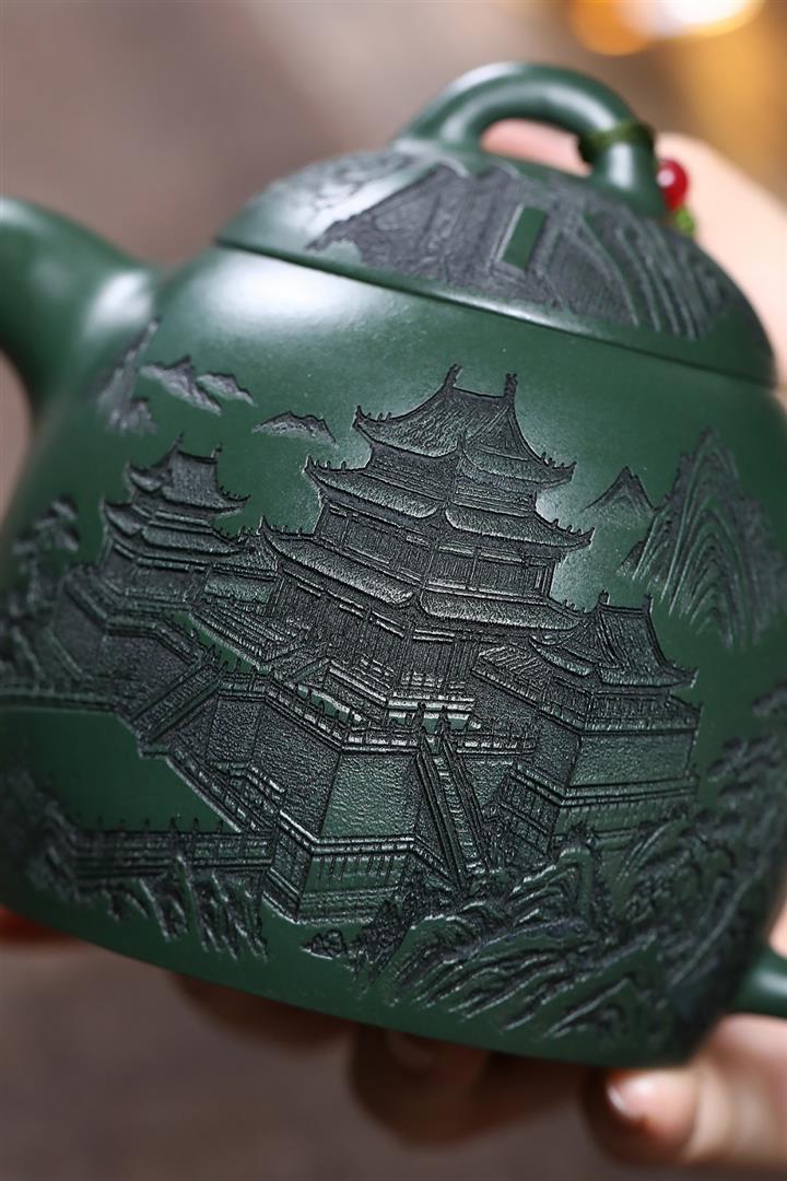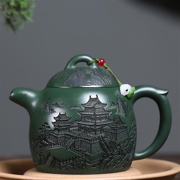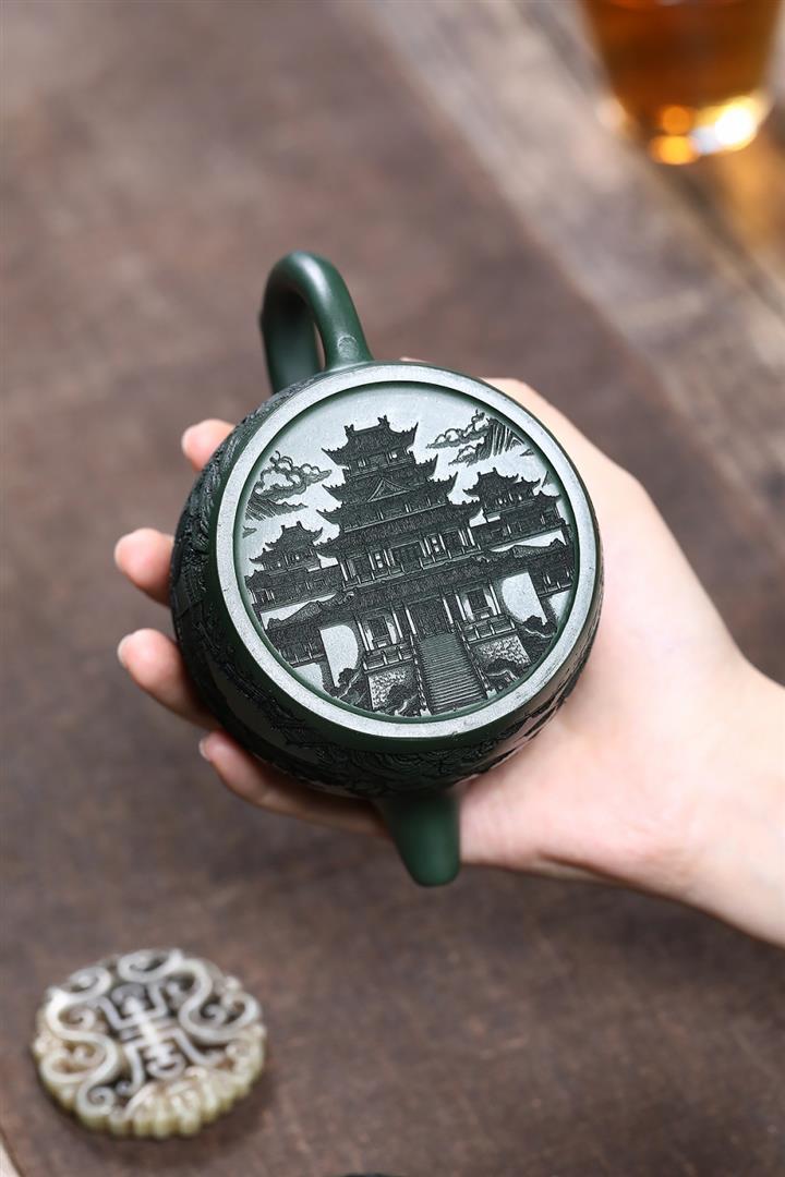原礦綠泥文人山水漢瓦茶壺POT7498