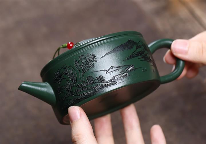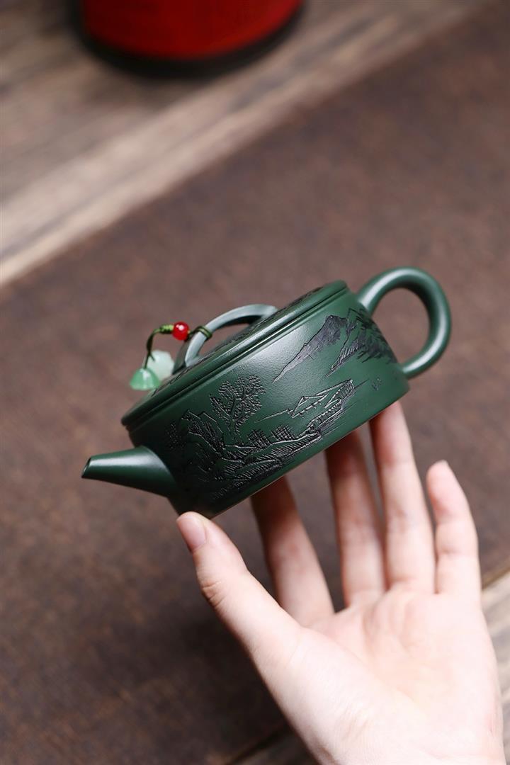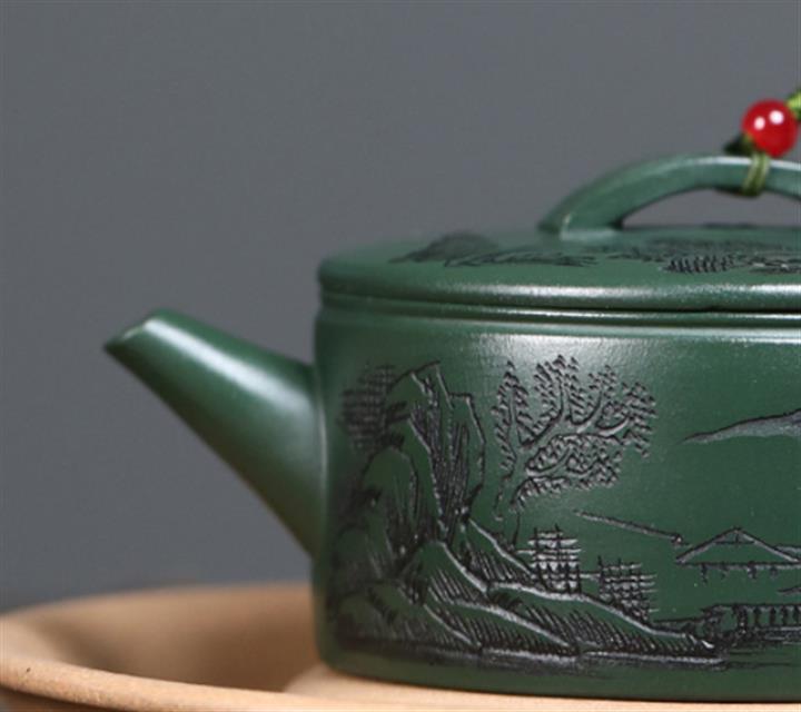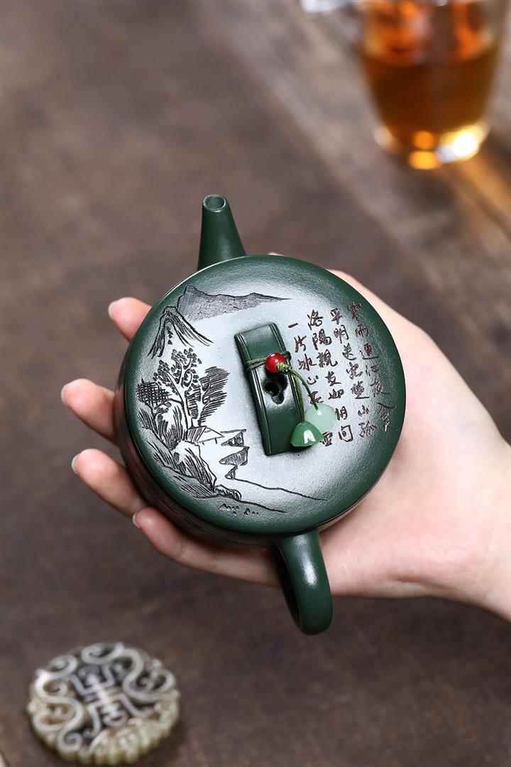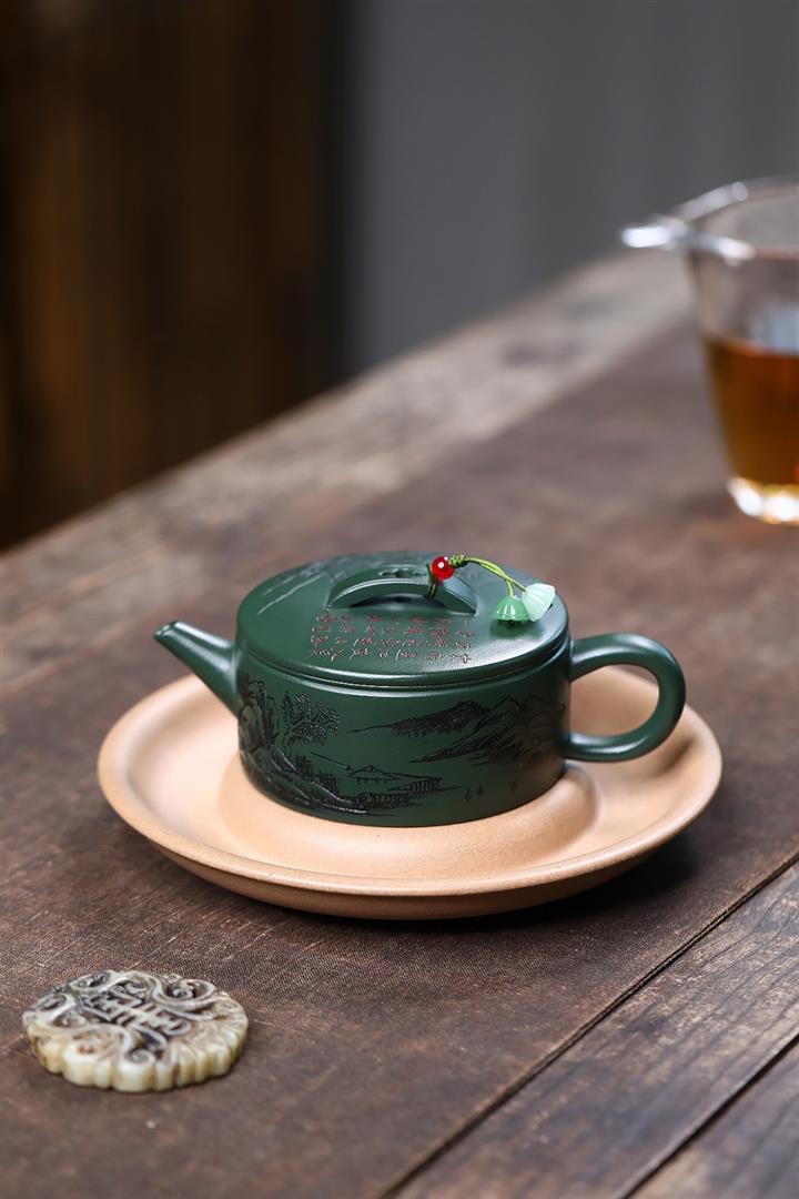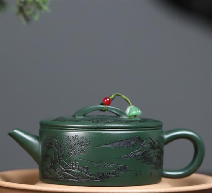 原礦綠泥文人山水漢瓦茶壺POT7498