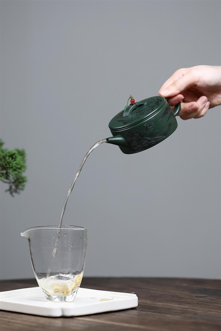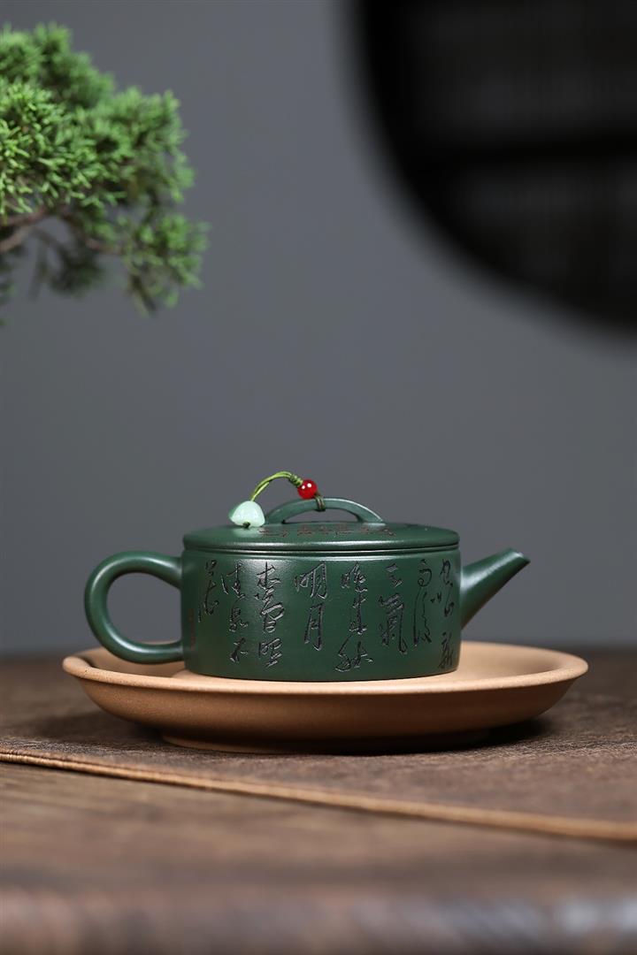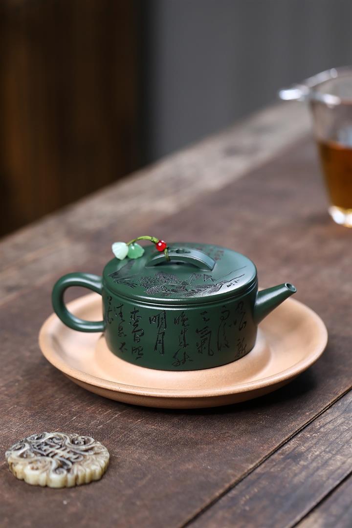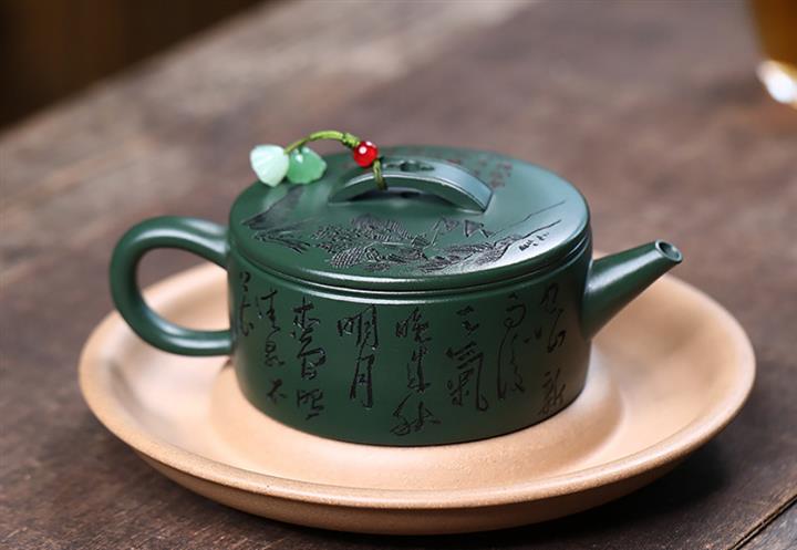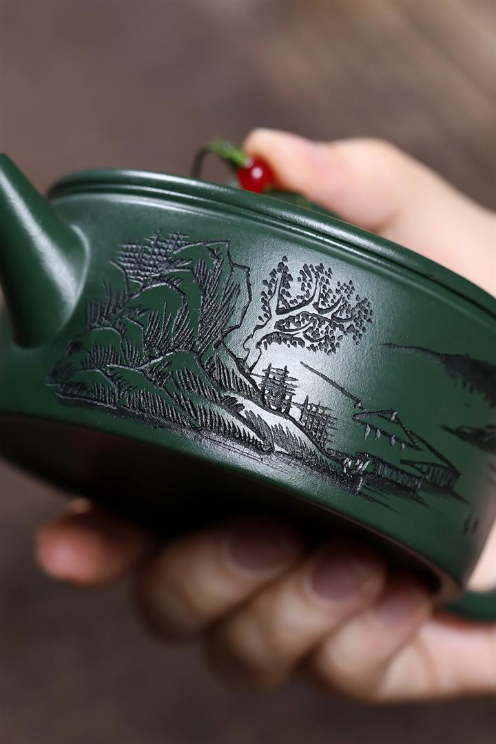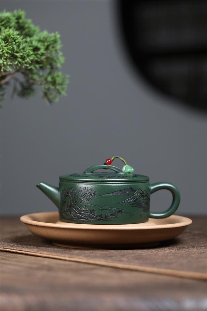 原礦綠泥文人山水漢瓦茶壺POT7498