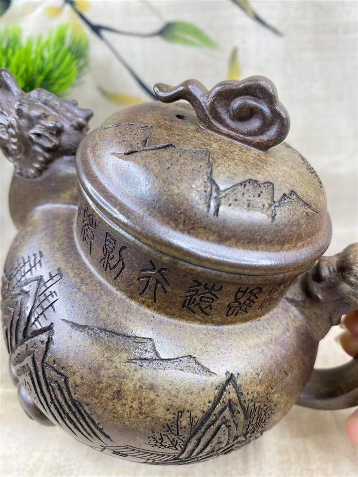 原礦古法沈香泥三足祥龍茶壺POT7507