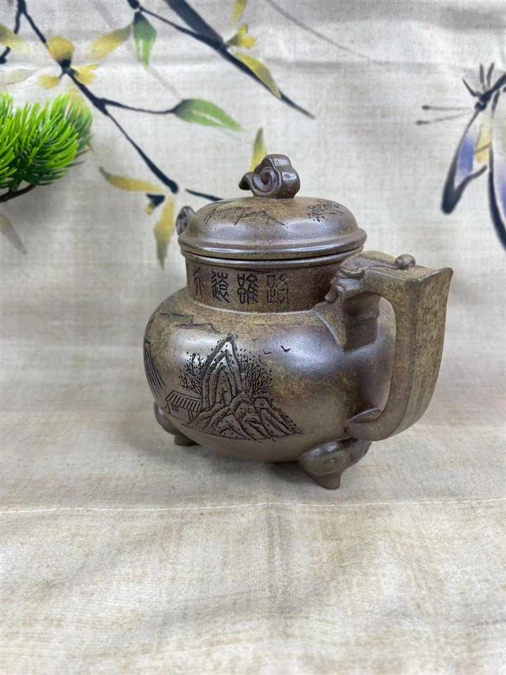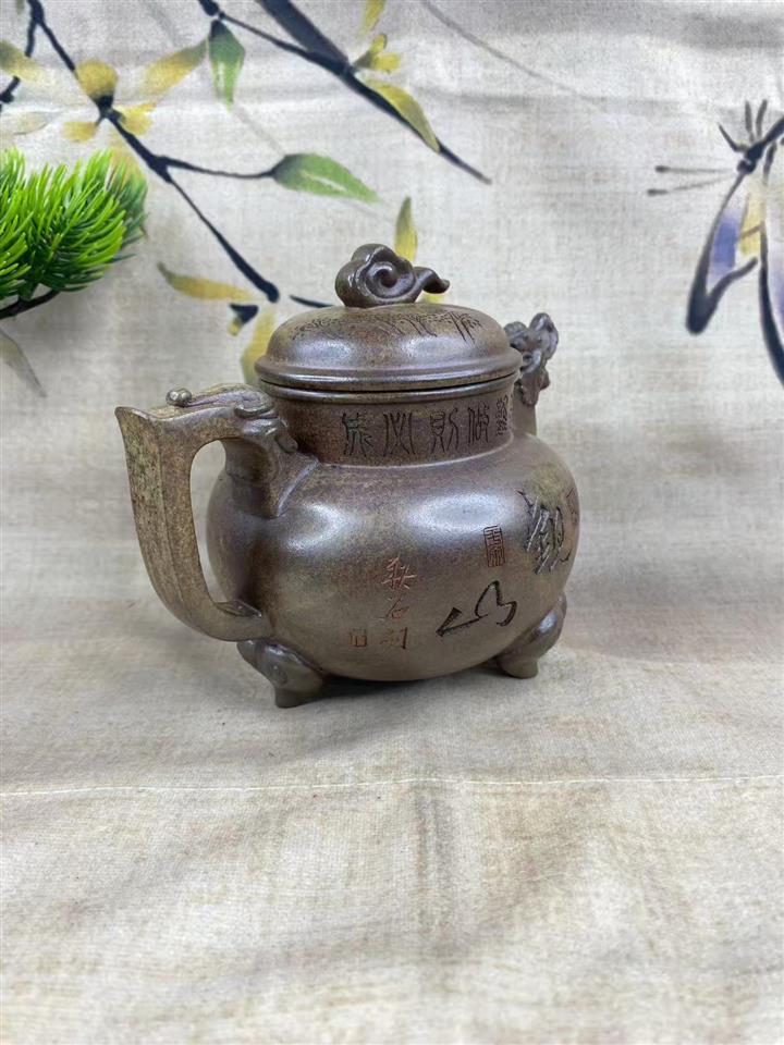 原礦紫砂君子蘭刻繪漢鐸茶壺POT7517