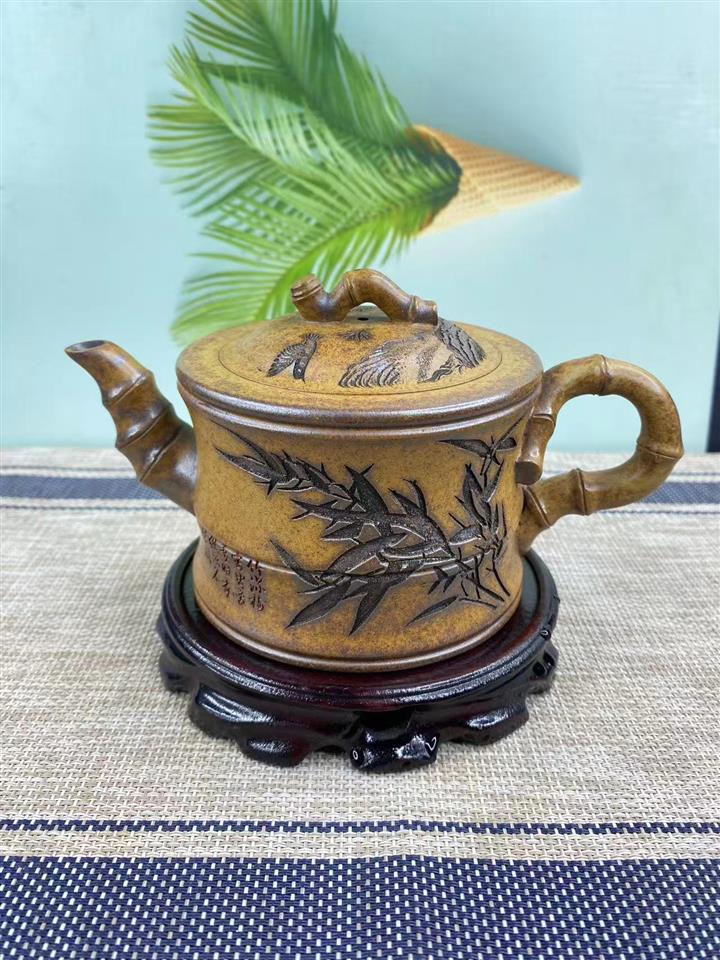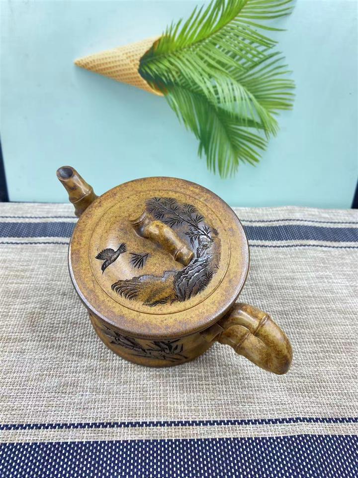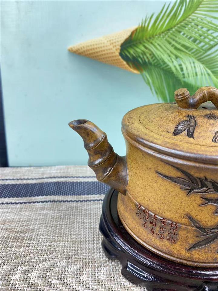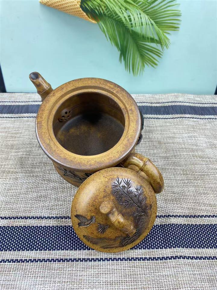 原礦紫砂君子蘭刻繪漢鐸茶壺POT7517
