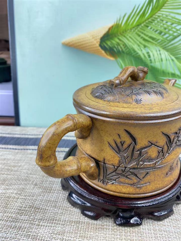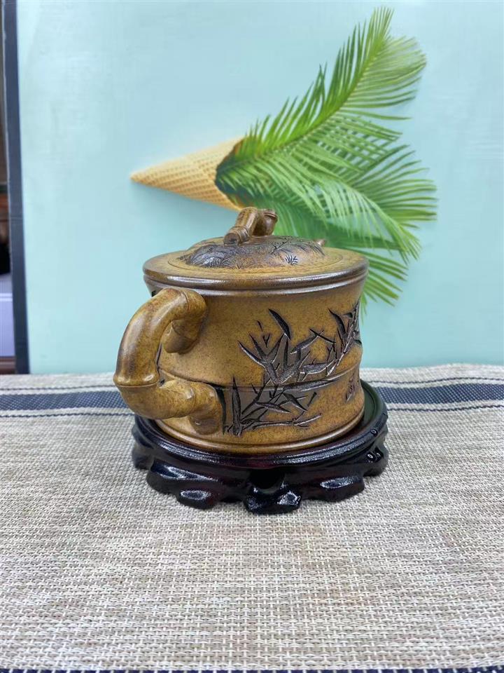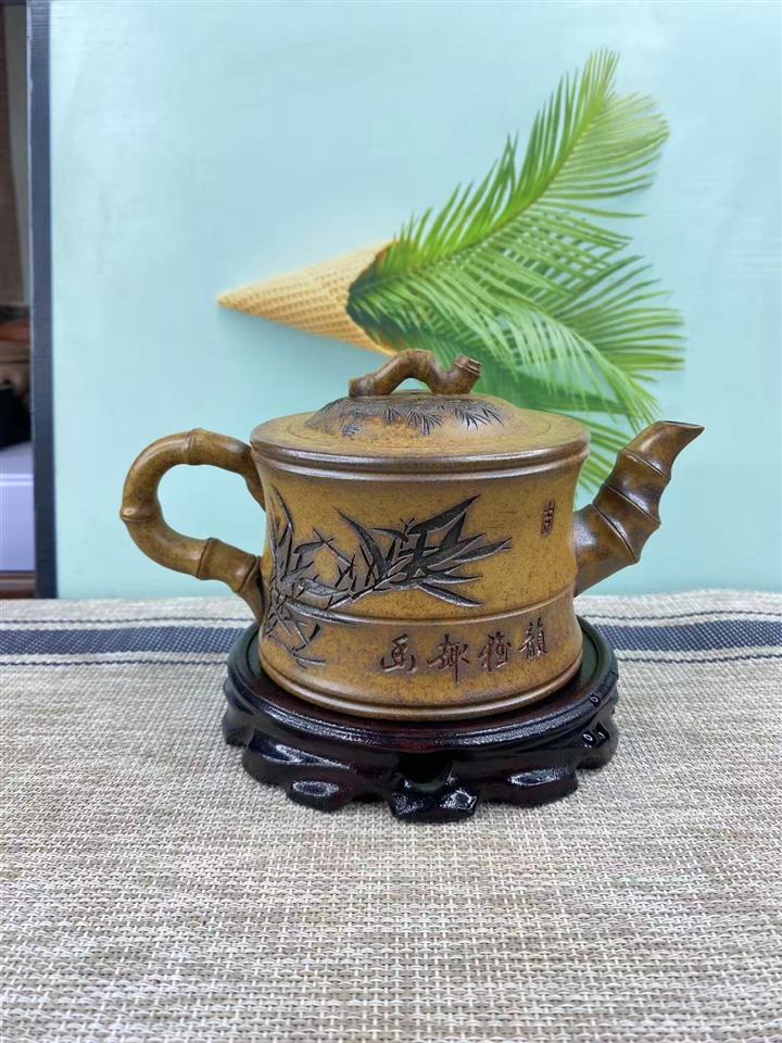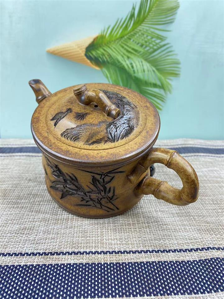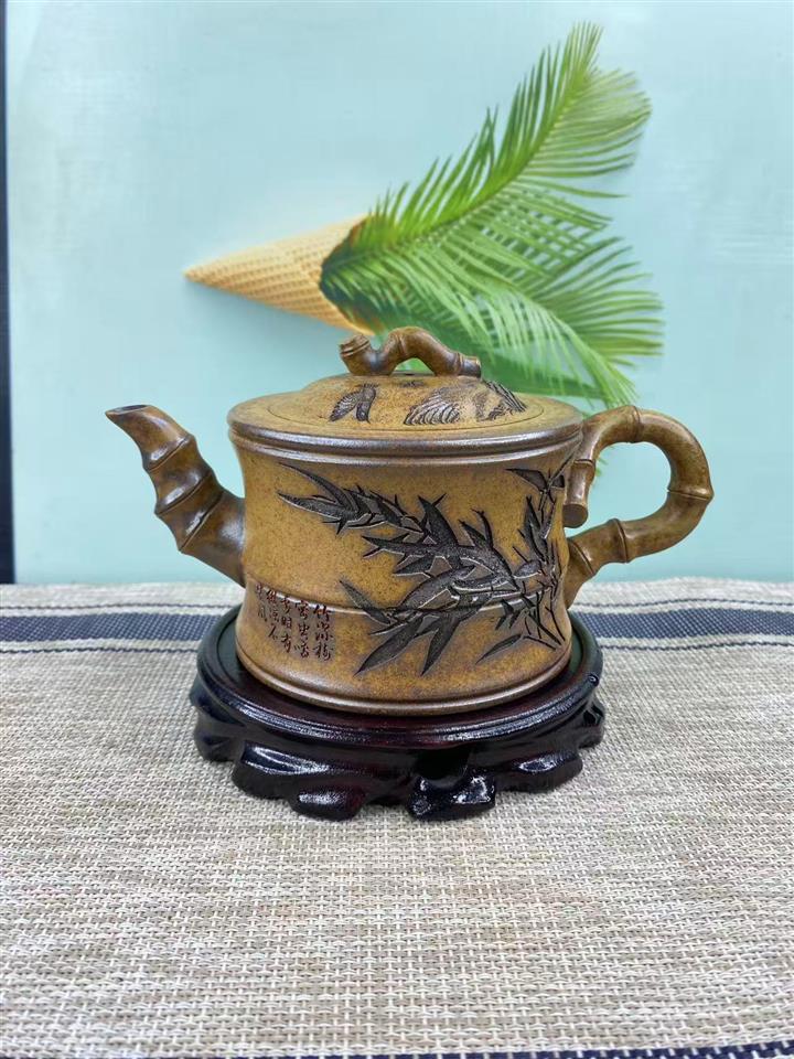 原礦紫砂君子蘭刻繪漢鐸茶壺POT7517