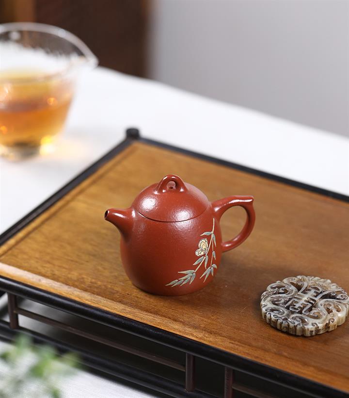 原礦朱泥泥繪秦權茶壺POT7511