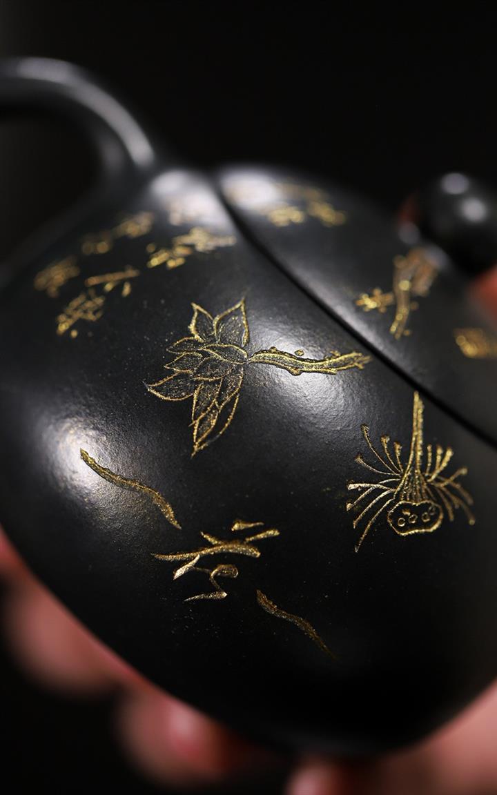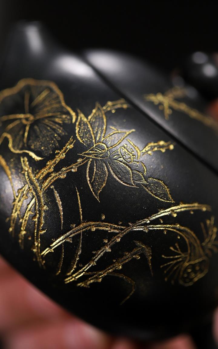 原礦紫砂君子蘭刻繪西施壺 POT7518