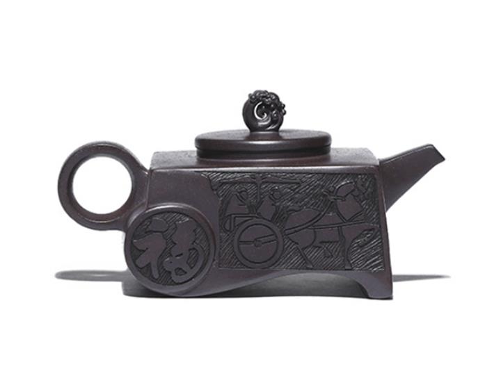 原礦紫泥泥繪暗香如意茶壺POT7531
