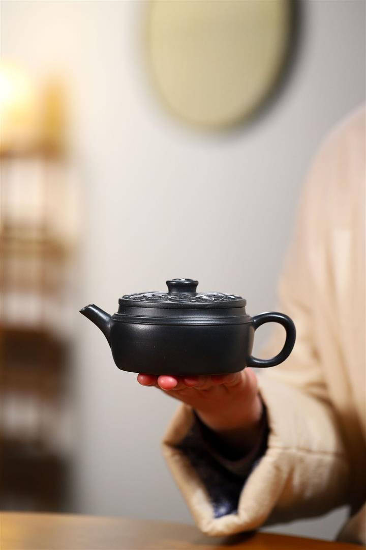 原礦紫泥泥繪暗香如意茶壺POT7531