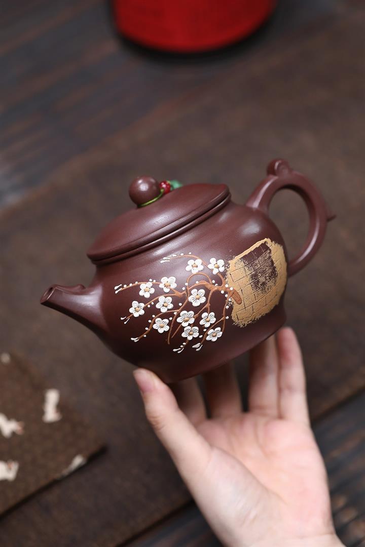 原礦紫泥泥繪暗香如意茶壺POT7531