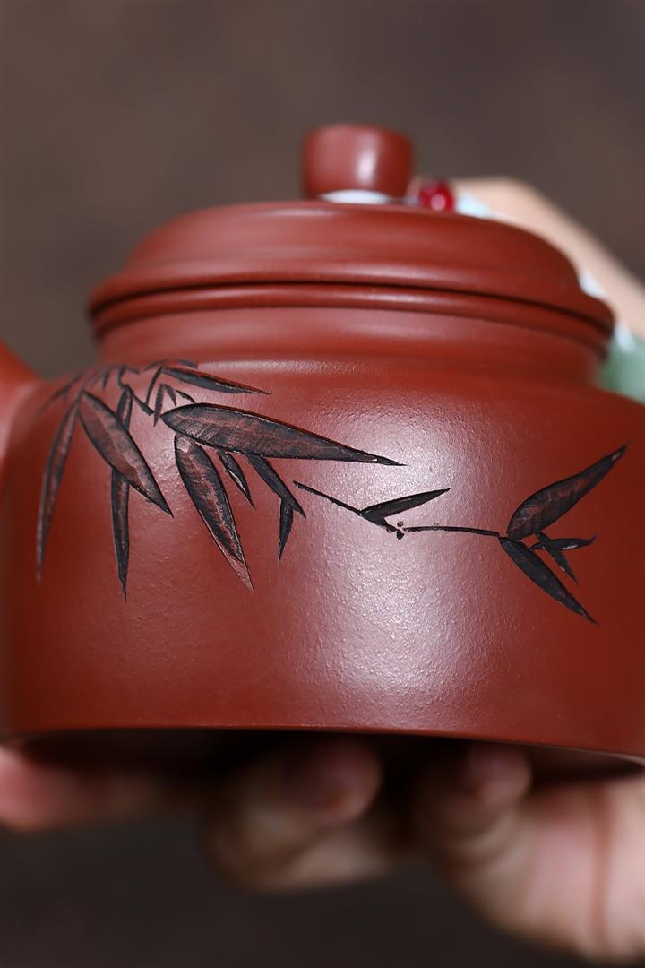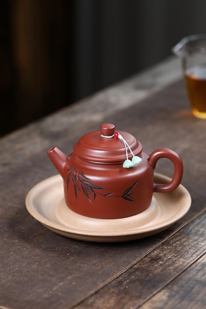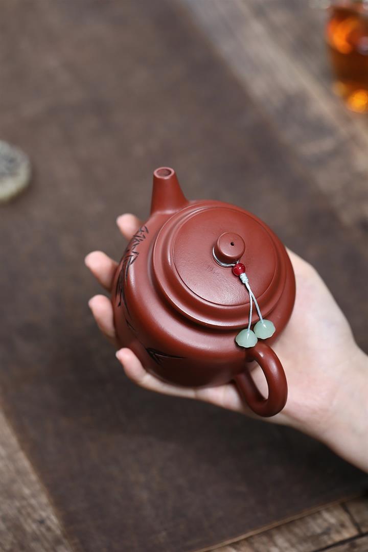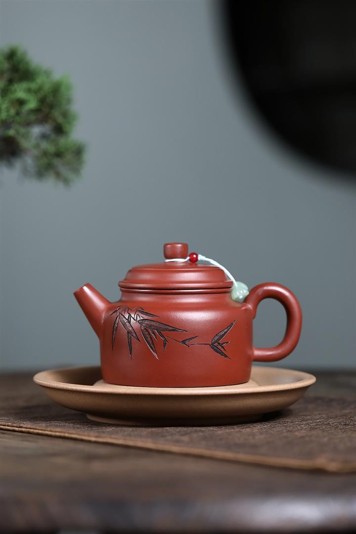 原礦大紅袍刻竹靜心德鐘茶壺POT7532