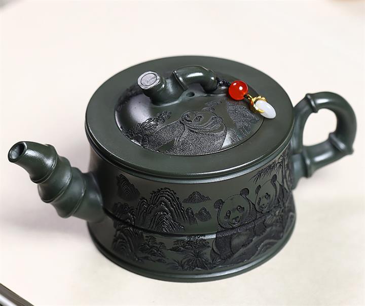 原礦墨綠泥熊貓壹品竹段茶壺POT7542