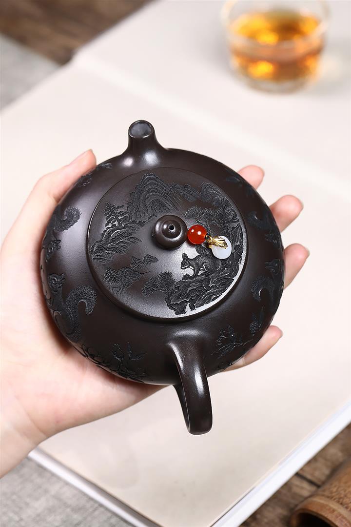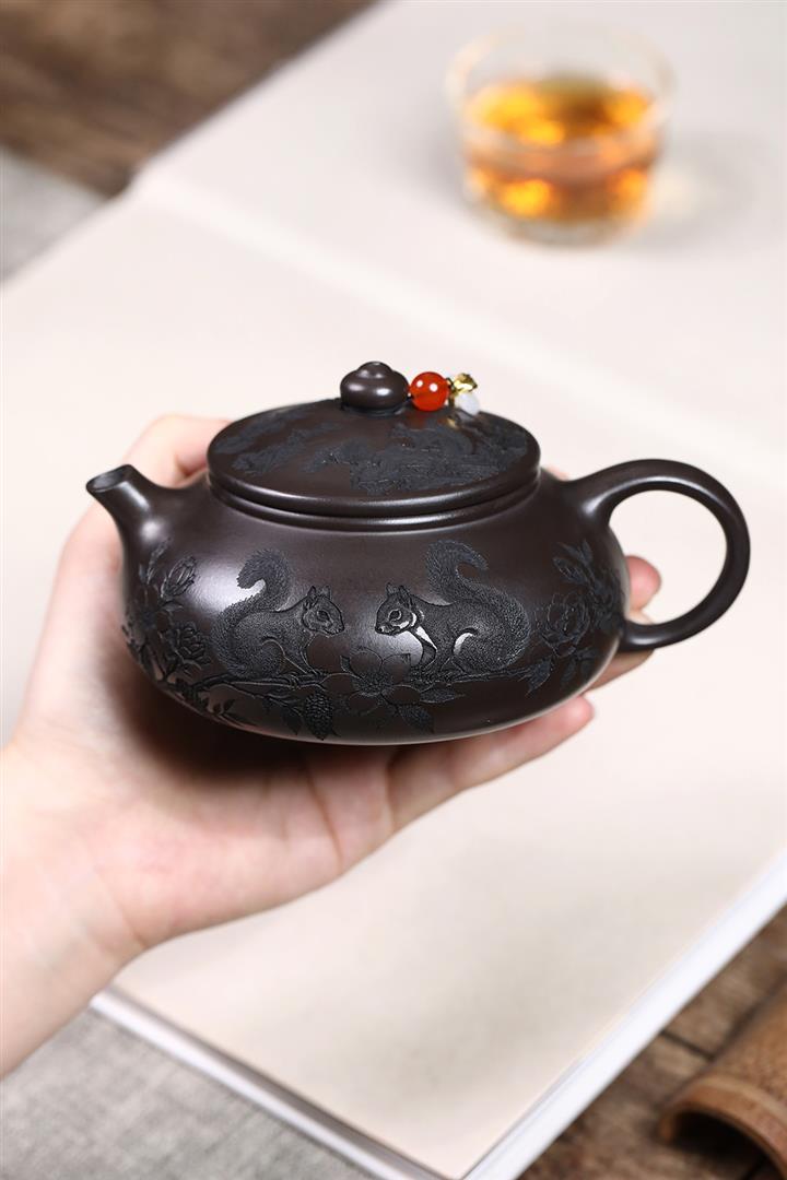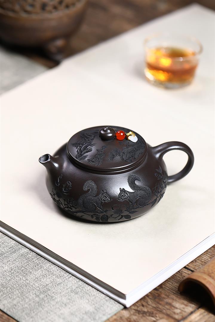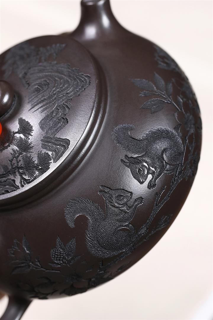 原礦玄鐵石黃松鼠寒江茶壺POT7541