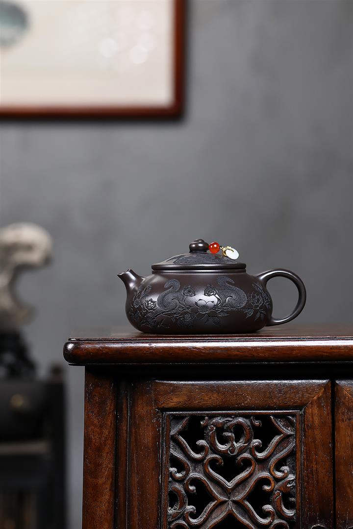 紫砂使用越久,壺身色澤越發光亮照人,氣韻溫雅。紫砂壺長久使用器身會因撫摸擦拭,變得越發溫潤光澤!