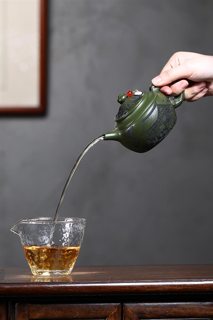 紫砂使用越久,壺身色澤越發光亮照人,氣韻溫雅。紫砂壺長久使用器身會因撫摸擦拭,變得越發溫潤光澤!