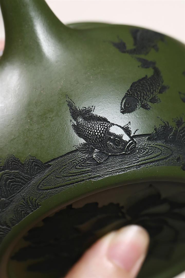【作品介紹】作品深蘊內涵,做工細致典雅,型用完備,器形端莊穩重,比例協調,結構嚴謹,泥色潤澤。