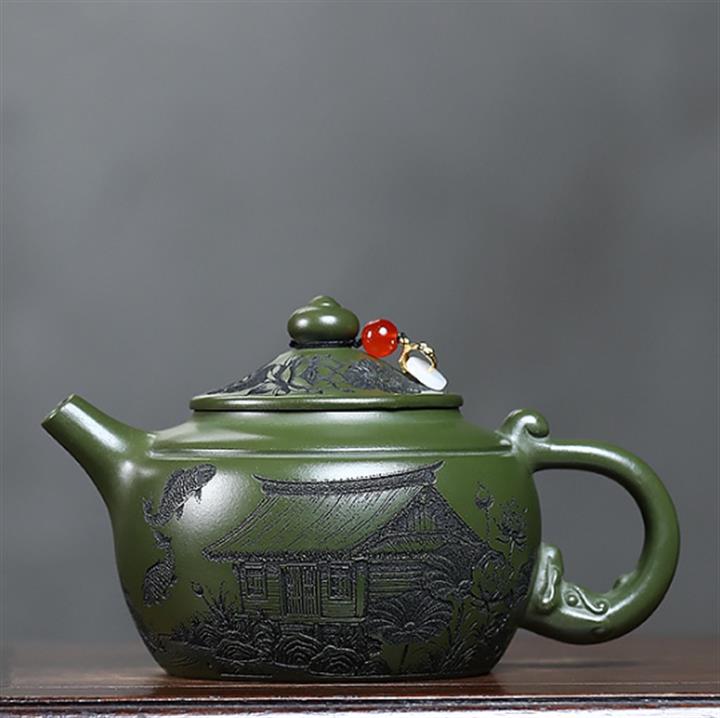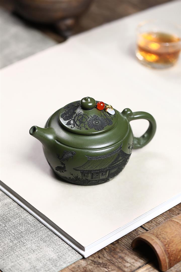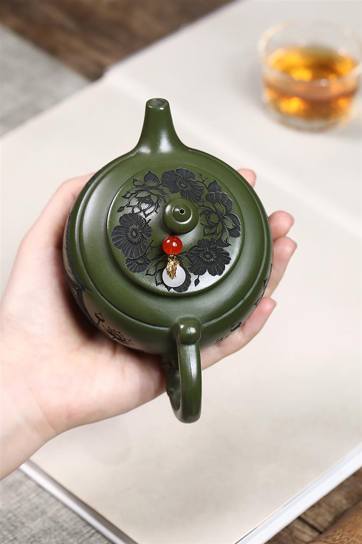 原礦綠泥靜待花開蓮子茶壺POT7550