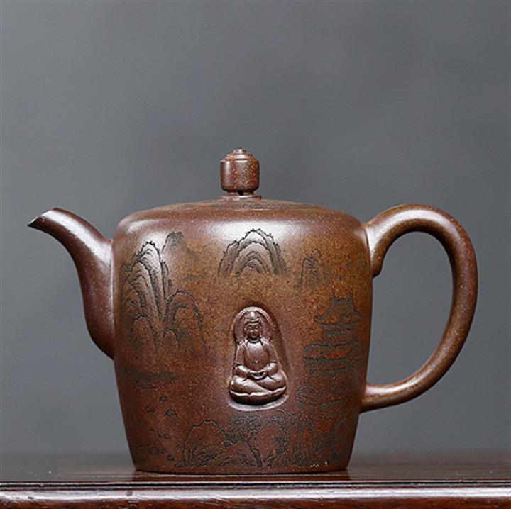 原礦龍骨金砂滿刻六方茶壺POT7725