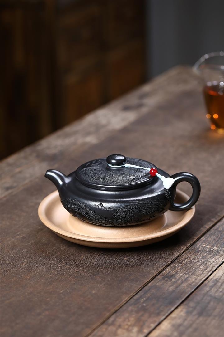 原礦老紫泥浮雕祥龍戲珠茶壺POT7734
