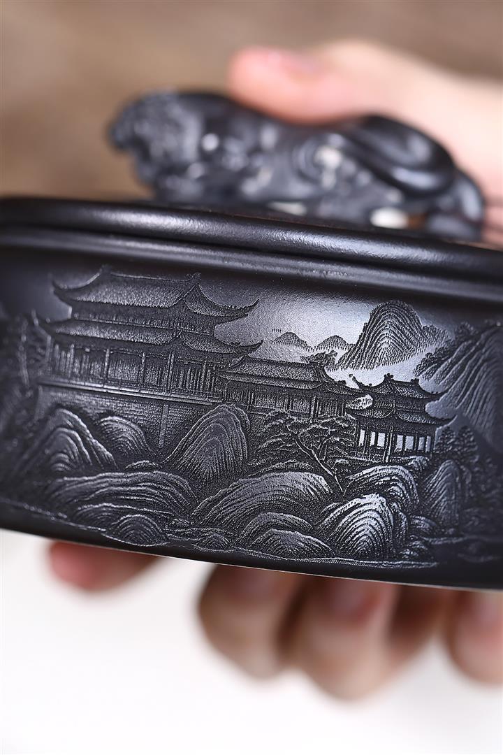 原礦墨綠泥雕龍點睛茶壺POT7736
