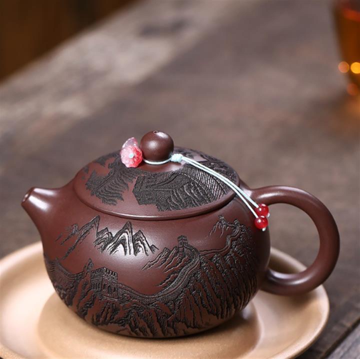 原礦老紫泥浮雕祥龍戲珠茶壺POT7734