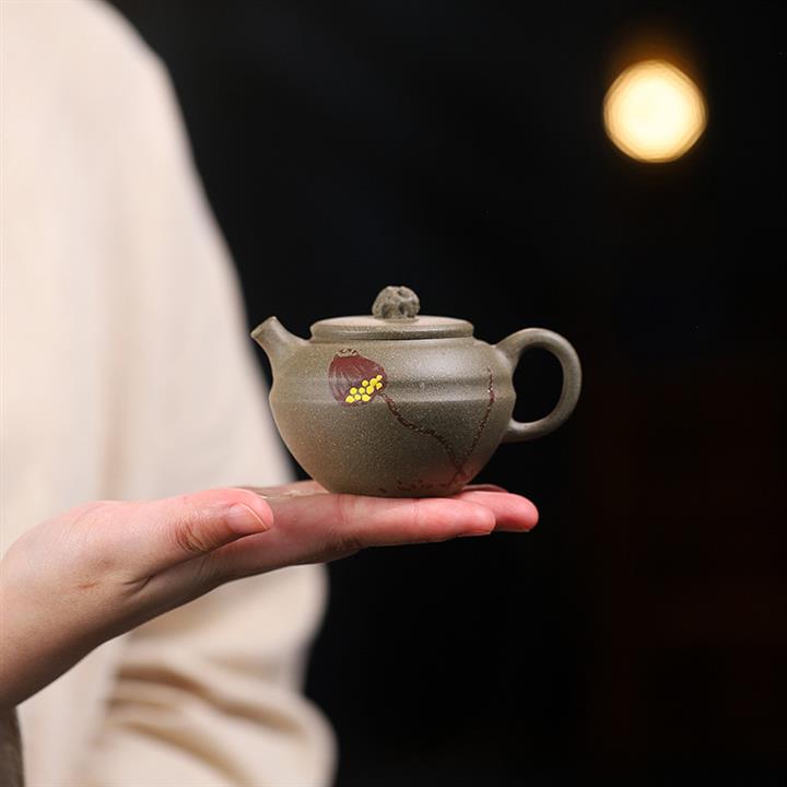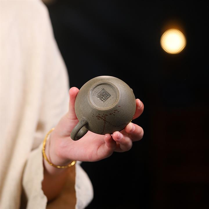 原礦綠泥手工柿圓茶壺POT7754