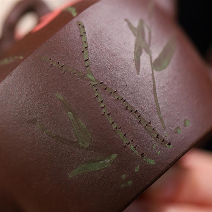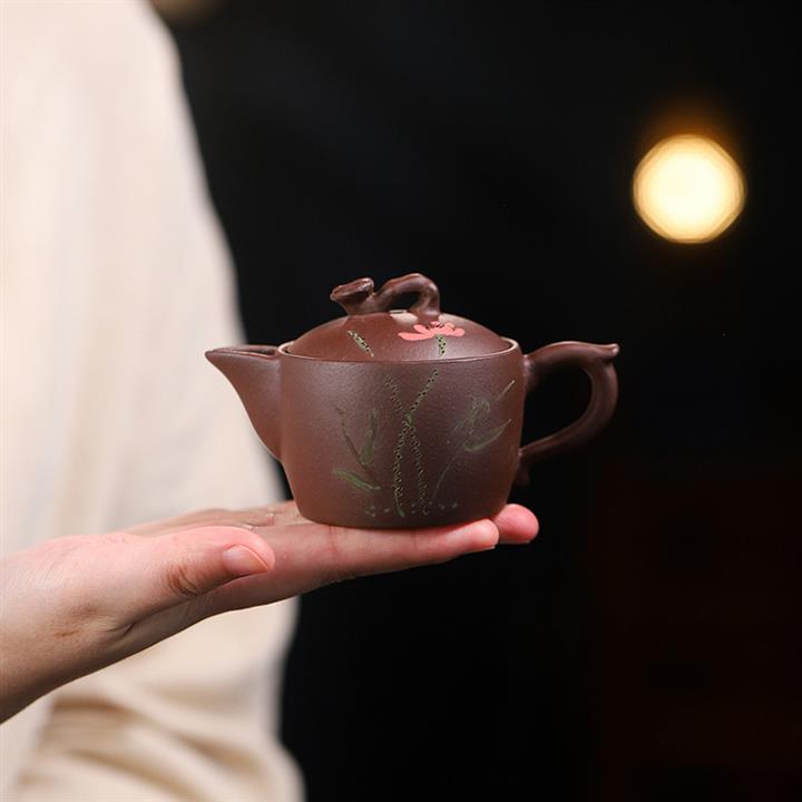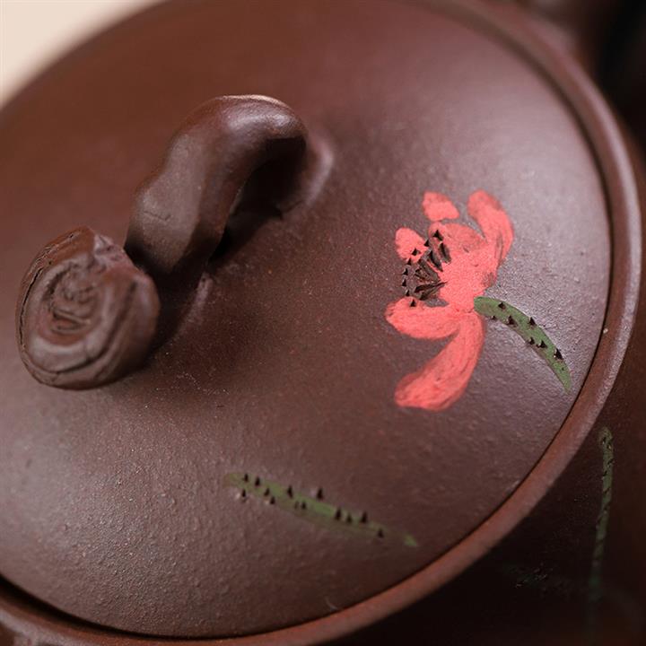 原礦降坡泥刻繪筋紋荷趣茶壺POT7748