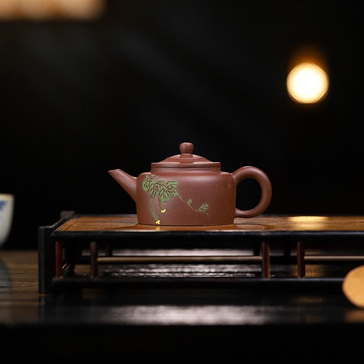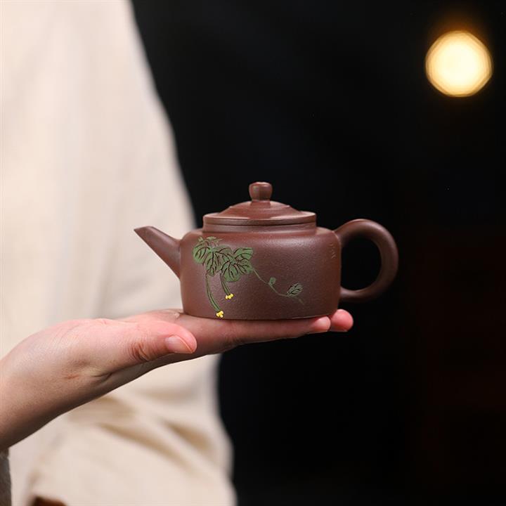 原礦降坡泥刻繪筋紋荷趣茶壺POT7748