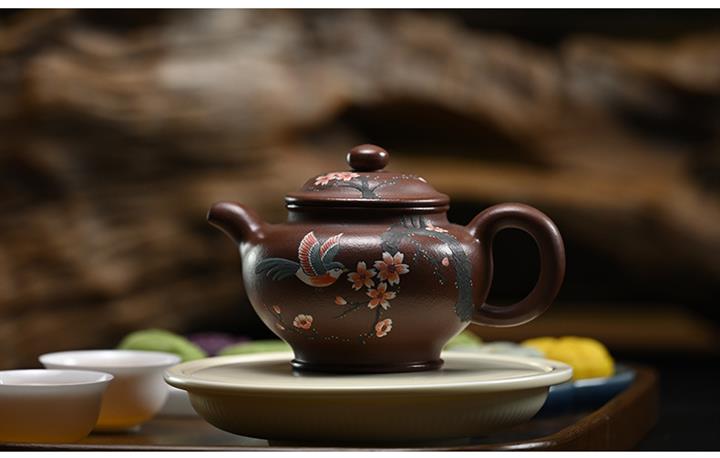 【泥料特點】砂土氣重,似淳實農民,日久使用,漸露鋒芒,養成變化,溫潤莊重。紫砂是壹種雙重氣孔結構的多孔性材質,氣孔微細,密度高。用紫砂壺沏茶,不失原味,且香不渙散,得茶之真香真味。紫砂使用越久,壺身色澤越發光亮照人,氣韻溫雅。紫砂壺長久使用器身會因撫摸擦拭,變得越發溫潤光澤。