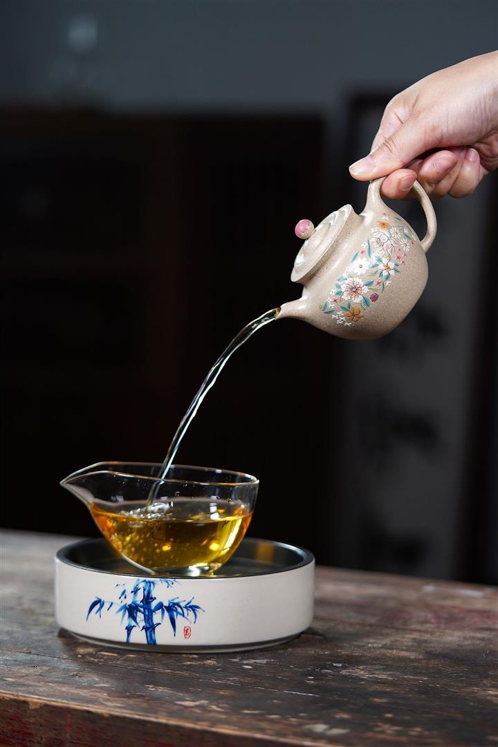 【泥料特點】砂土氣重,似淳實農民,日久使用,漸露鋒芒,養成變化,溫潤莊重。紫砂是壹種雙重氣孔結構的多孔性材質,氣孔微細,密度高。用紫砂壺沏茶,不失原味,且香不渙散,得茶之真香真味。紫砂使用越久,壺身色澤越發光亮照人,氣韻溫雅。紫砂壺長久使用器身會因撫摸擦拭,變得越發溫潤光澤。