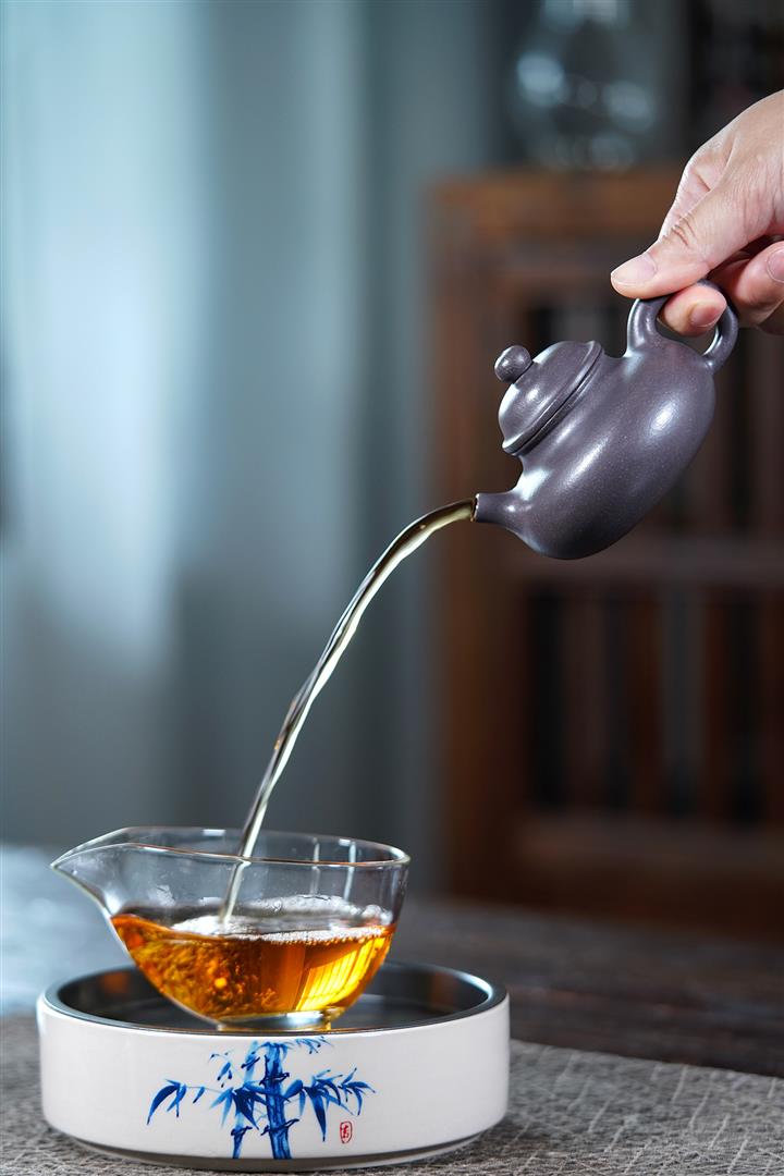 【泥料特點】砂土氣重,似淳實農民,日久使用,漸露鋒芒,養成變化,溫潤莊重。紫砂是壹種雙重氣孔結構的多孔性材質,氣孔微細,密度高。用紫砂壺沏茶,不失原味,且香不渙散,得茶之真香真味。紫砂使用越久,壺身色澤越發光亮照人,氣韻溫雅。紫砂壺長久使用器身會因撫摸擦拭,變得越發溫潤光澤。