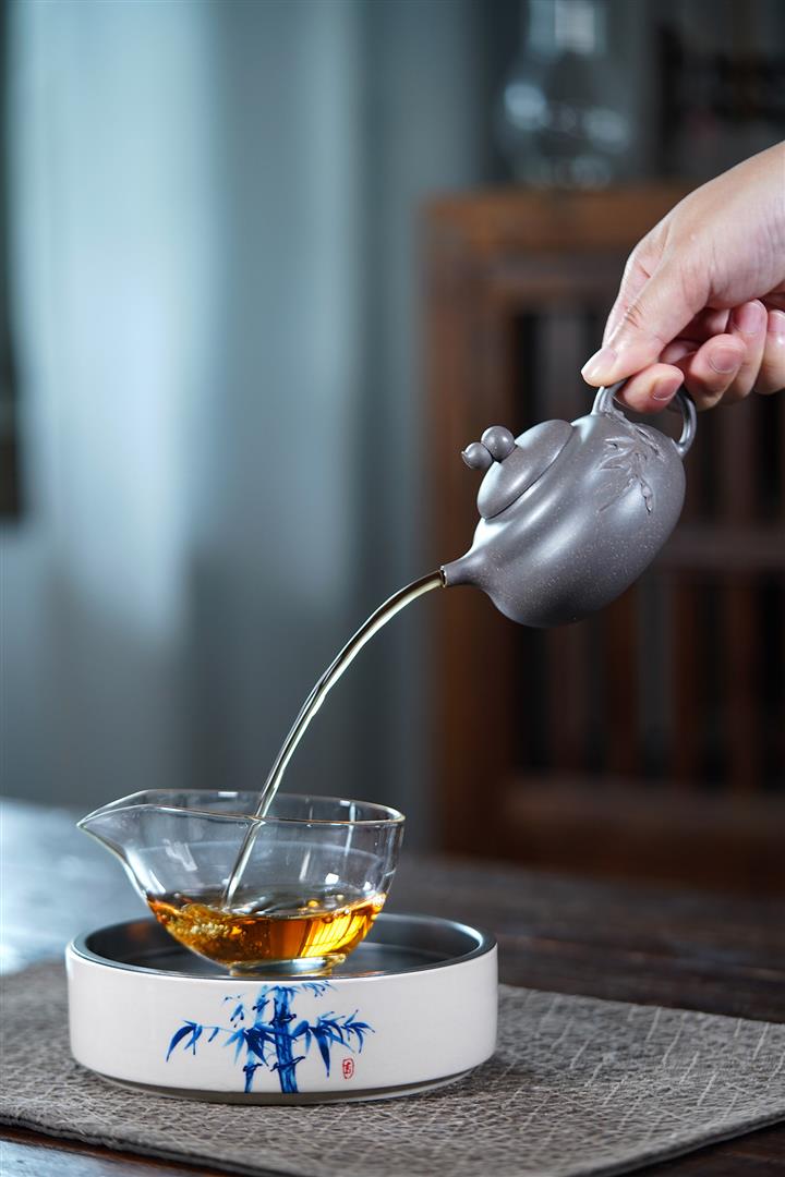 【泥料特點】砂土氣重,似淳實農民,日久使用,漸露鋒芒,養成變化,溫潤莊重。紫砂是壹種雙重氣孔結構的多孔性材質,氣孔微細,密度高。用紫砂壺沏茶,不失原味,且香不渙散,得茶之真香真味。紫砂使用越久,壺身色澤越發光亮照人,氣韻溫雅。紫砂壺長久使用器身會因撫摸擦拭,變得越發溫潤光澤。