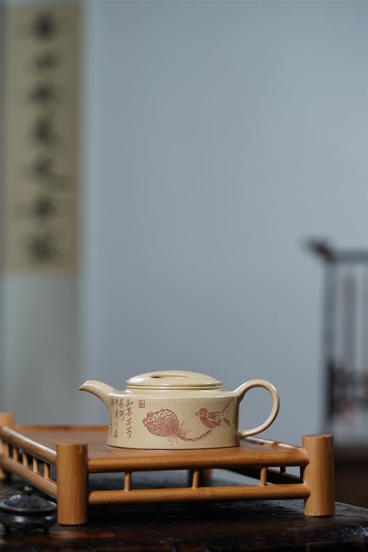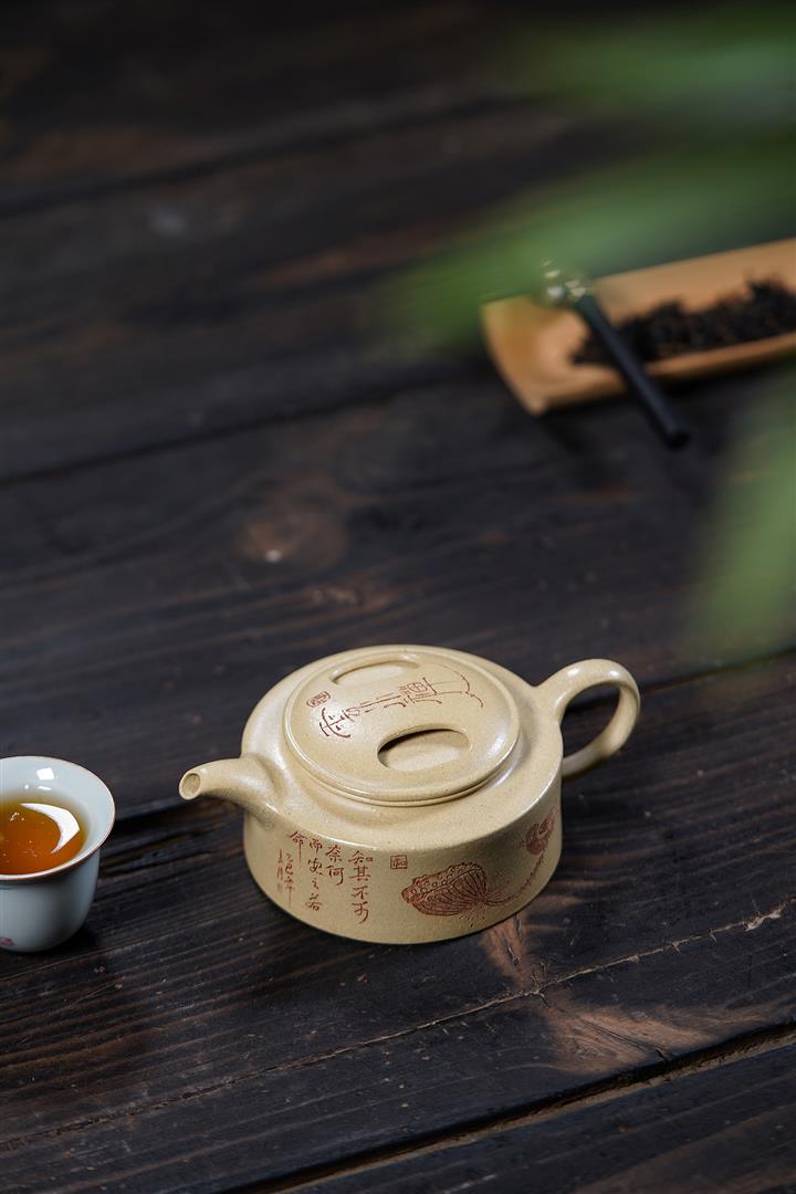 原礦石黃笠帽水平名家手制茶壺POT7777