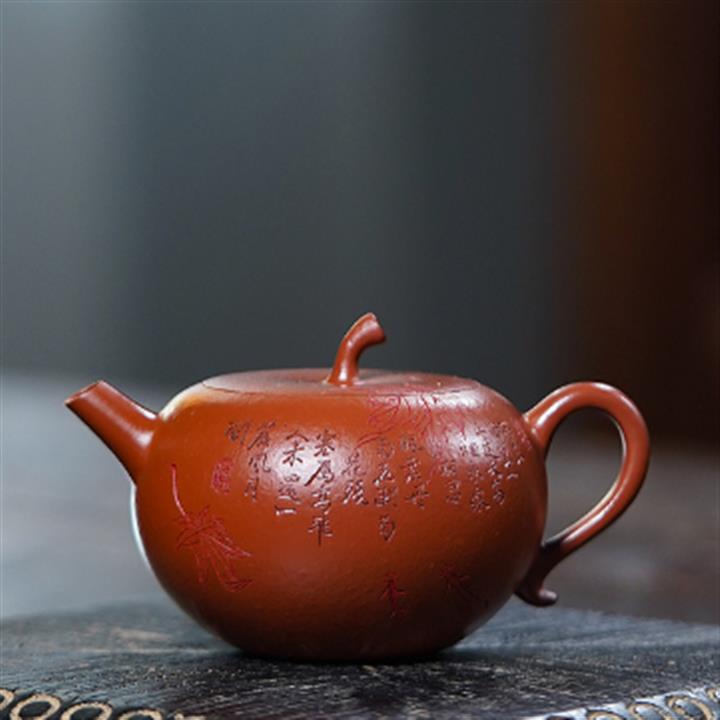 原礦小煤窯朱泥刻繪小蘋果茶壺POT7776