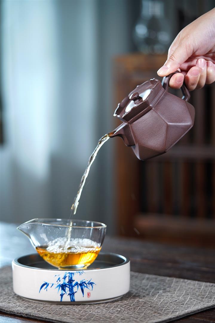 【泥料特點】砂土氣重,似淳實農民,日久使用,漸露鋒芒,養成變化,溫潤莊重。紫砂是壹種雙重氣孔結構的多孔性材質,氣孔微細,密度高。用紫砂壺沏茶,不失原味,且香不渙散,得茶之真香真味。紫砂使用越久,壺身色澤越發光亮照人,氣韻溫雅。紫砂壺長久使用器身會因撫摸擦拭,變得越發溫潤光澤。