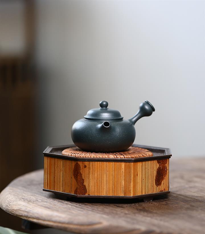 原礦天青六方竹鼎泥茶壺POT7788