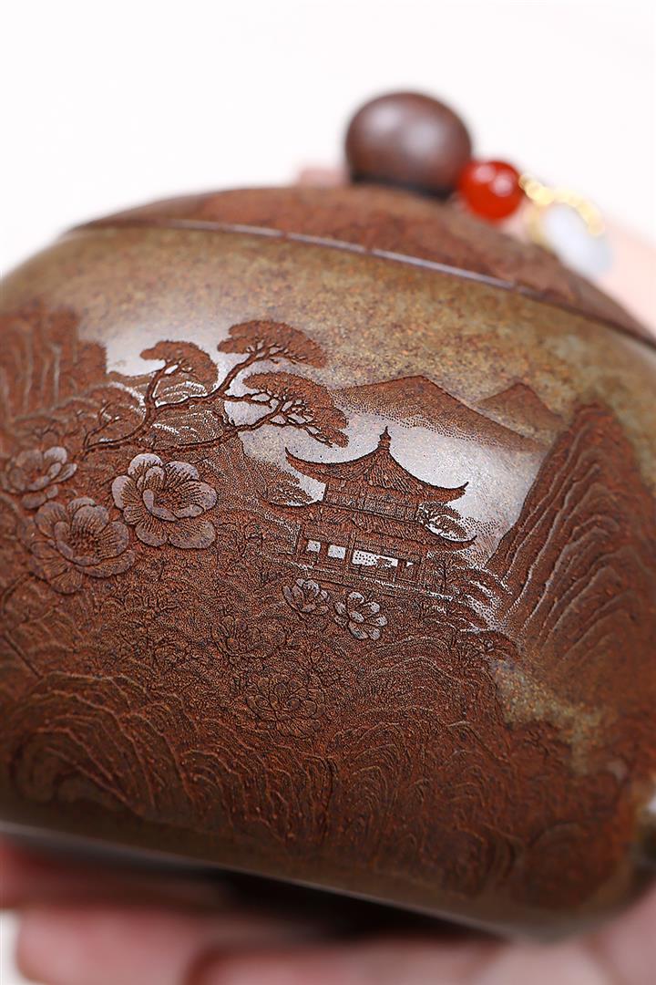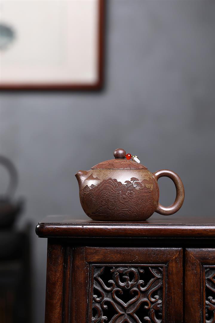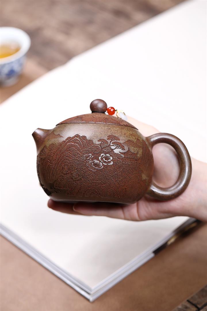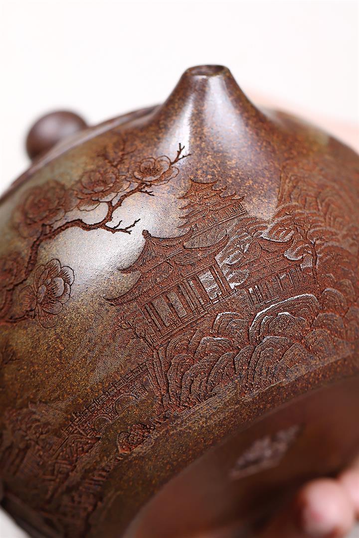 原礦紫泥刻繪山水德鐘茶壺POT7787