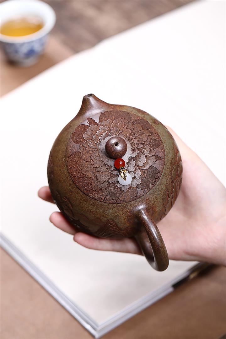 原礦大紅袍焐灰筋紋錦囊茶壺POT7785