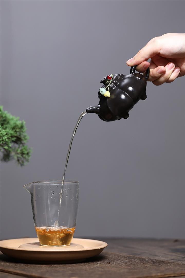 【泥料特點】砂土氣重,似淳實農民,日久使用,漸露鋒芒,養成變化,溫潤莊重。紫砂是壹種雙重氣孔結構的多孔性材質,氣孔微細,密度高。用紫砂壺沏茶,不失原味,且香不渙散,得茶之真香真味。紫砂使用越久,壺身色澤越發光亮照人,氣韻溫雅。紫砂壺長久使用器身會因撫摸擦拭,變得越發溫潤光澤。
