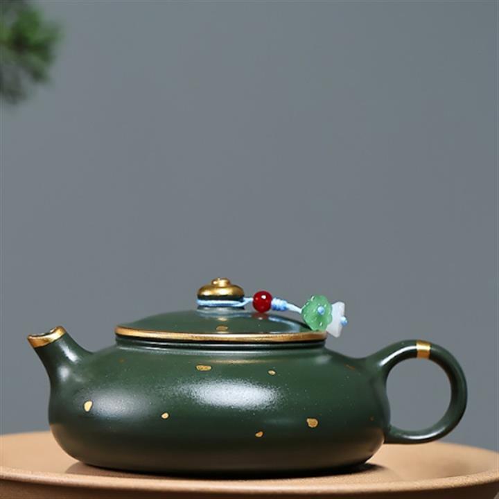 原礦綠泥灑金小品寒江泡茶壺POT7795