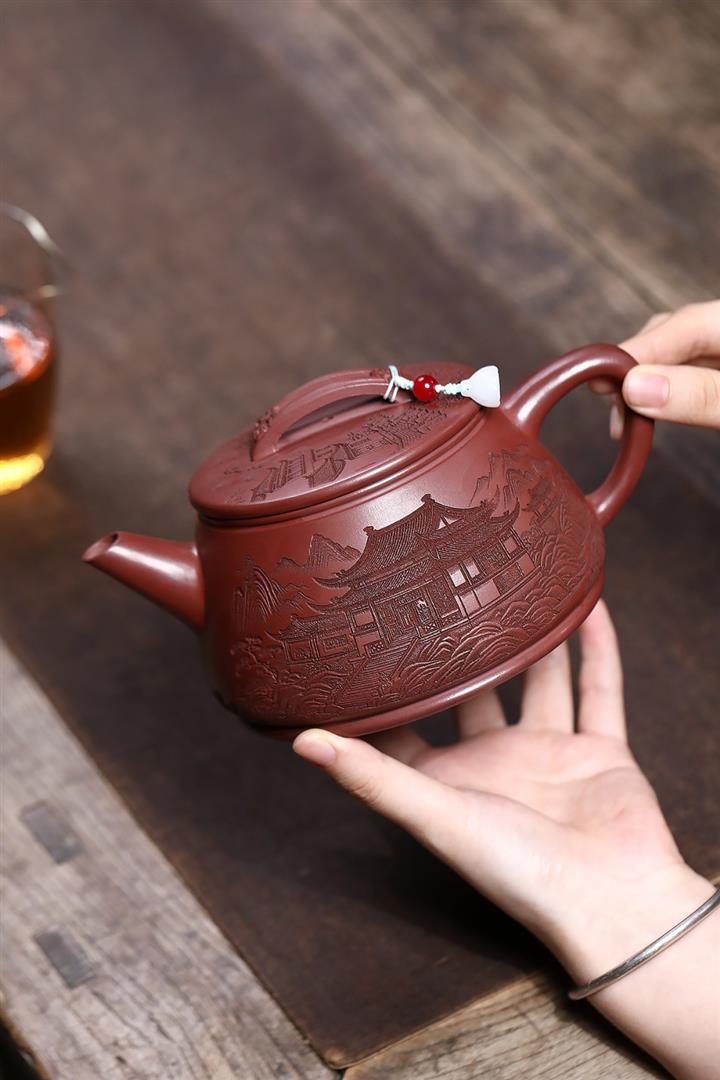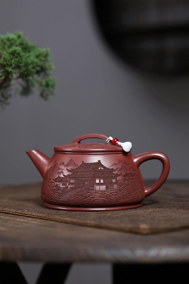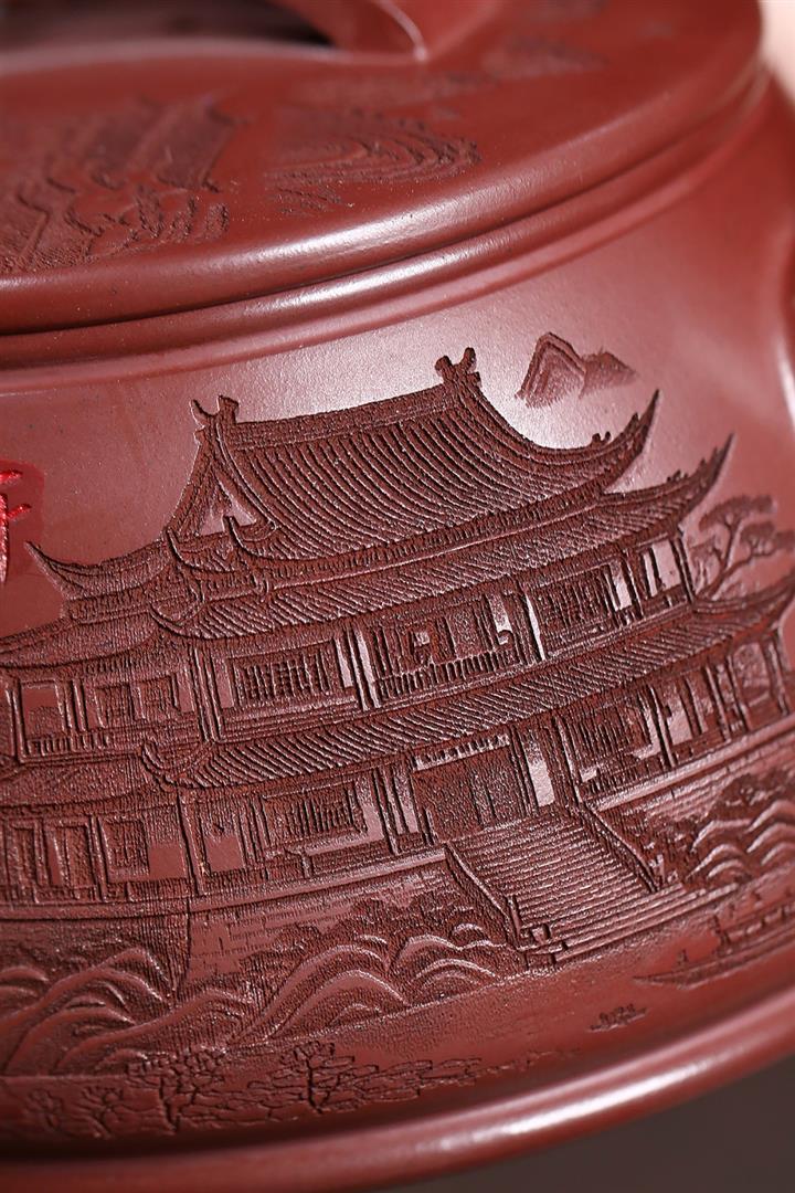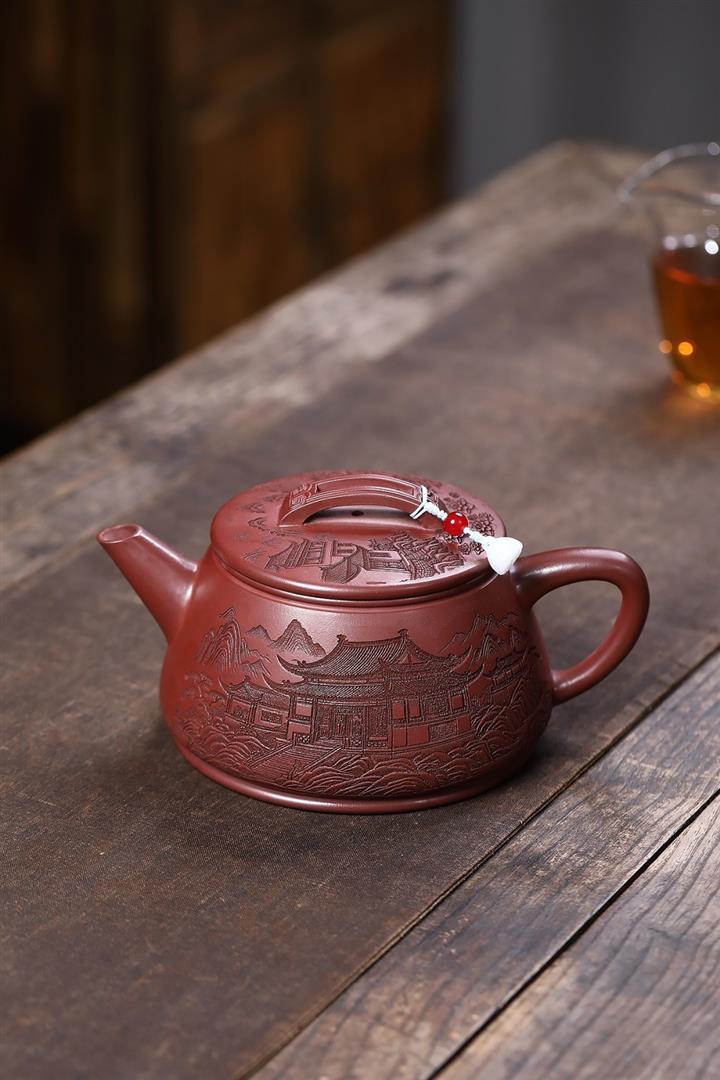 原礦紫泥刻繪山水德鐘茶壺POT7787