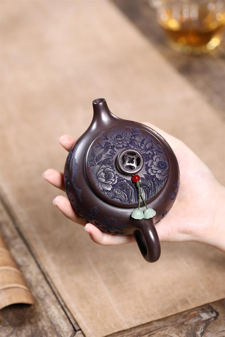 原礦紫朱泥鏤空笑櫻茶壺POT7801