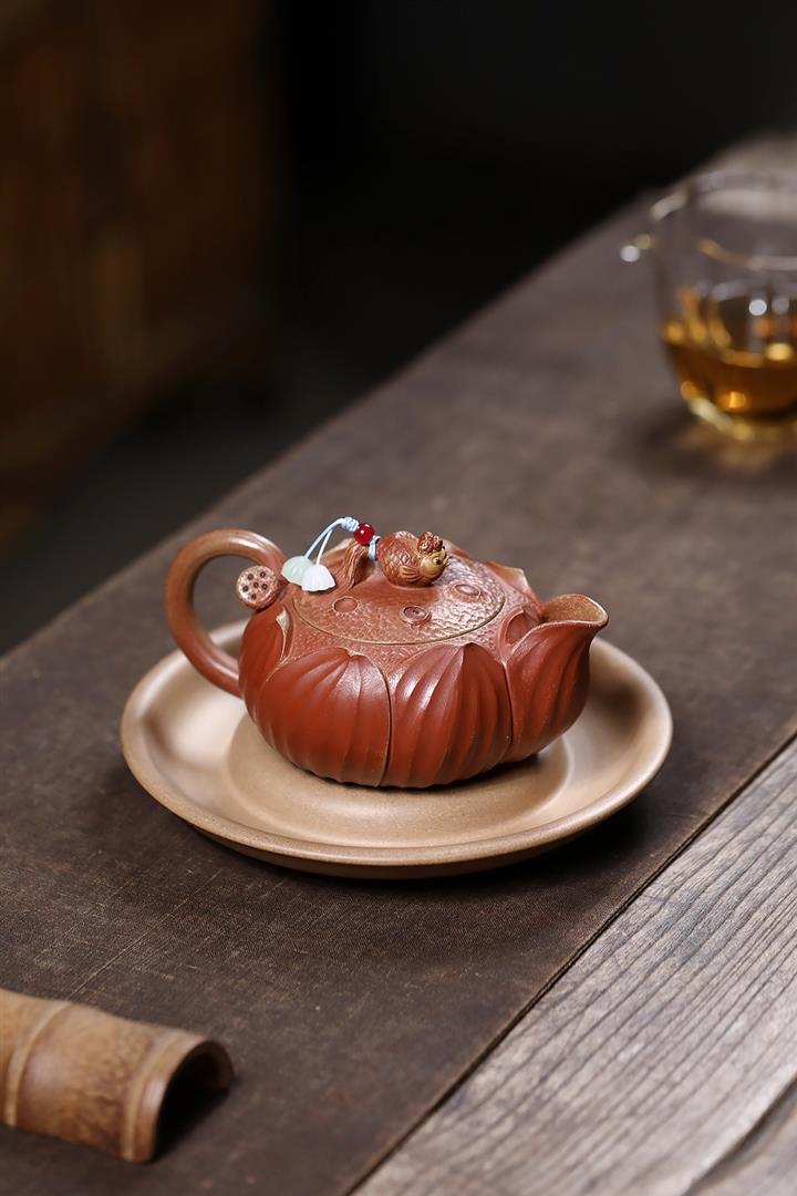 【泥料特點】砂土氣重,似淳實農民,日久使用,漸露鋒芒,養成變化,溫潤莊重。紫砂是壹種雙重氣孔結構的多孔性材質,氣孔微細,密度高。用紫砂壺沏茶,不失原味,且香不渙散,得茶之真香真味。紫砂使用越久,壺身色澤越發光亮照人,氣韻溫雅。紫砂壺長久使用器身會因撫摸擦拭,變得越發溫潤光澤。
