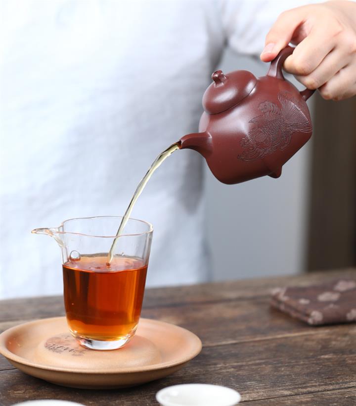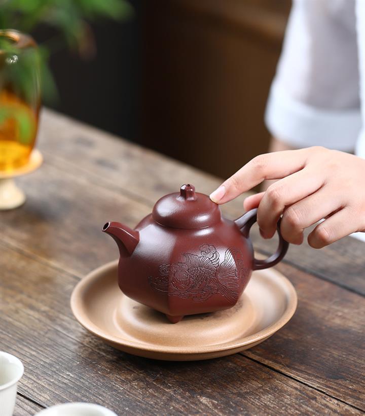 【泥料特點】砂土氣重,似淳實農民,日久使用,漸露鋒芒,養成變化,溫潤莊重。紫砂是壹種雙重氣孔結構的多孔性材質,氣孔微細,密度高。用紫砂壺沏茶,不失原味,且香不渙散,得茶之真香真味。紫砂使用越久,壺身色澤越發光亮照人,氣韻溫雅。紫砂壺長久使用器身會因撫摸擦拭,變得越發溫潤光澤。