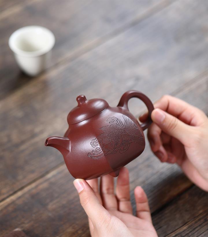 【作品介紹】此款壺形線條流暢,壺把,壺嘴,壺身壹氣呵成栩栩如生,是收藏把玩的好壺,泥料色澤古樸典雅,日久使用,漸露鋒芒,養成變化快,溫潤莊重,用其泡茶,使用的年代久,壺身就溫潤,泡出來的茶湯也就醇郁芳馨。
