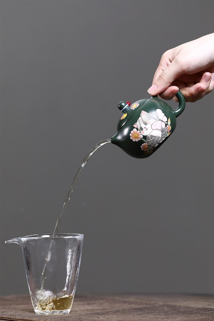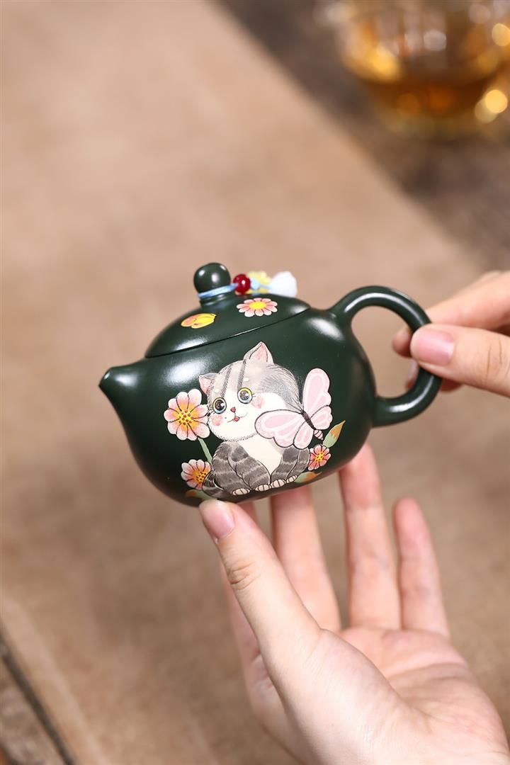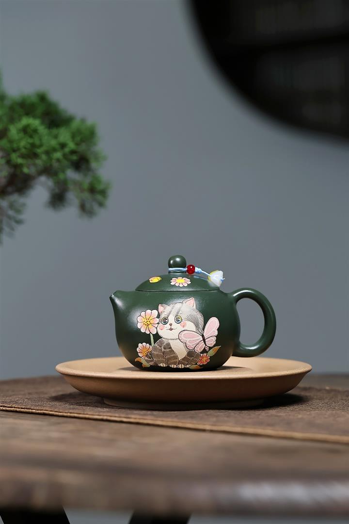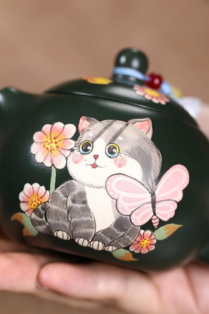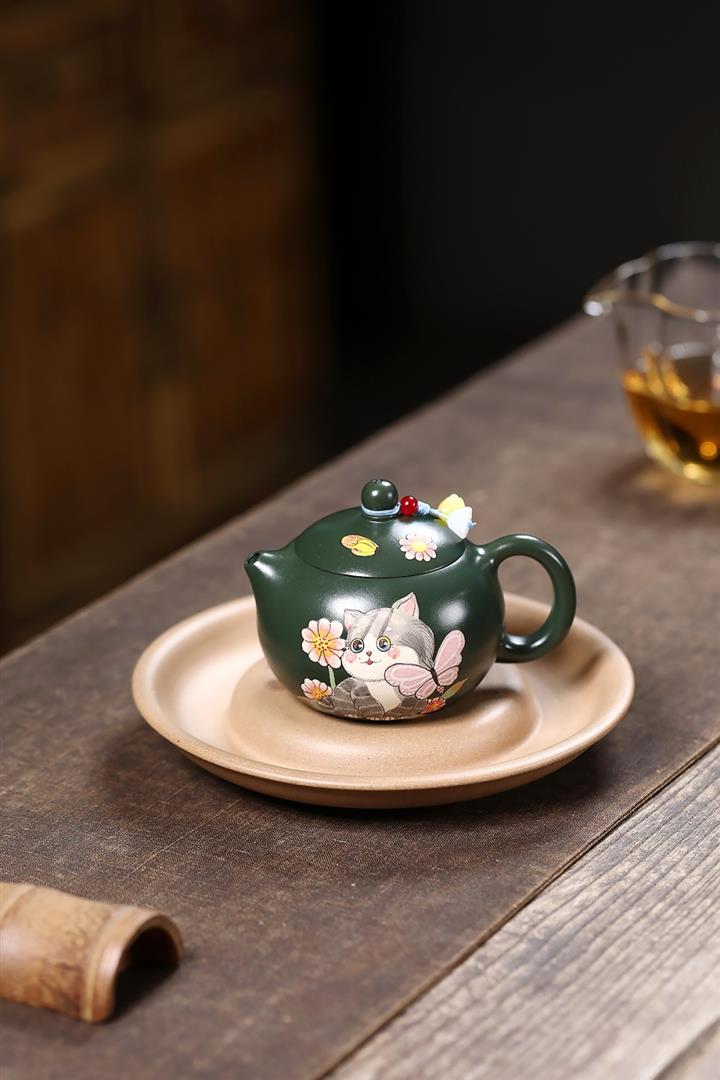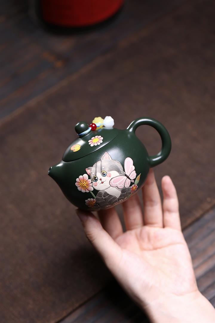 原礦綠泥貓貓西施茶壺POT7803