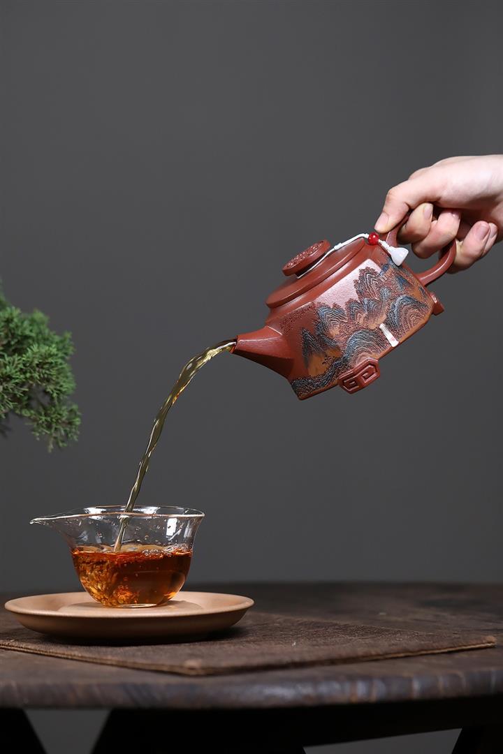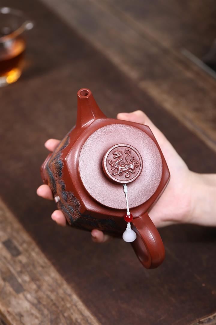 原礦大紅袍手工描金水平茶壺POT7813