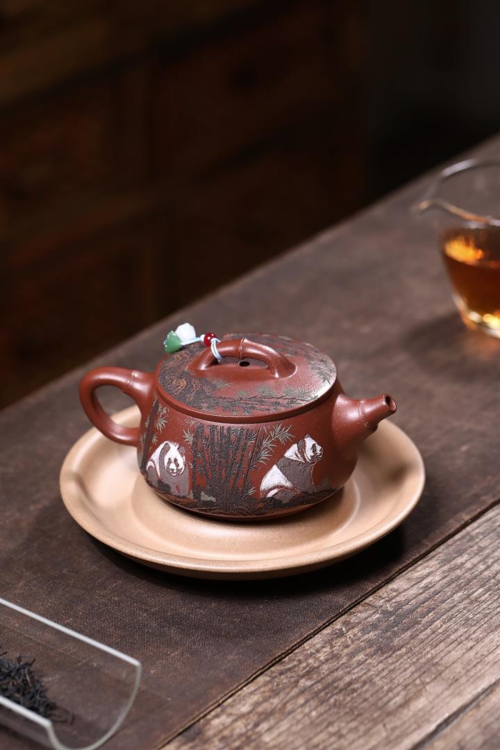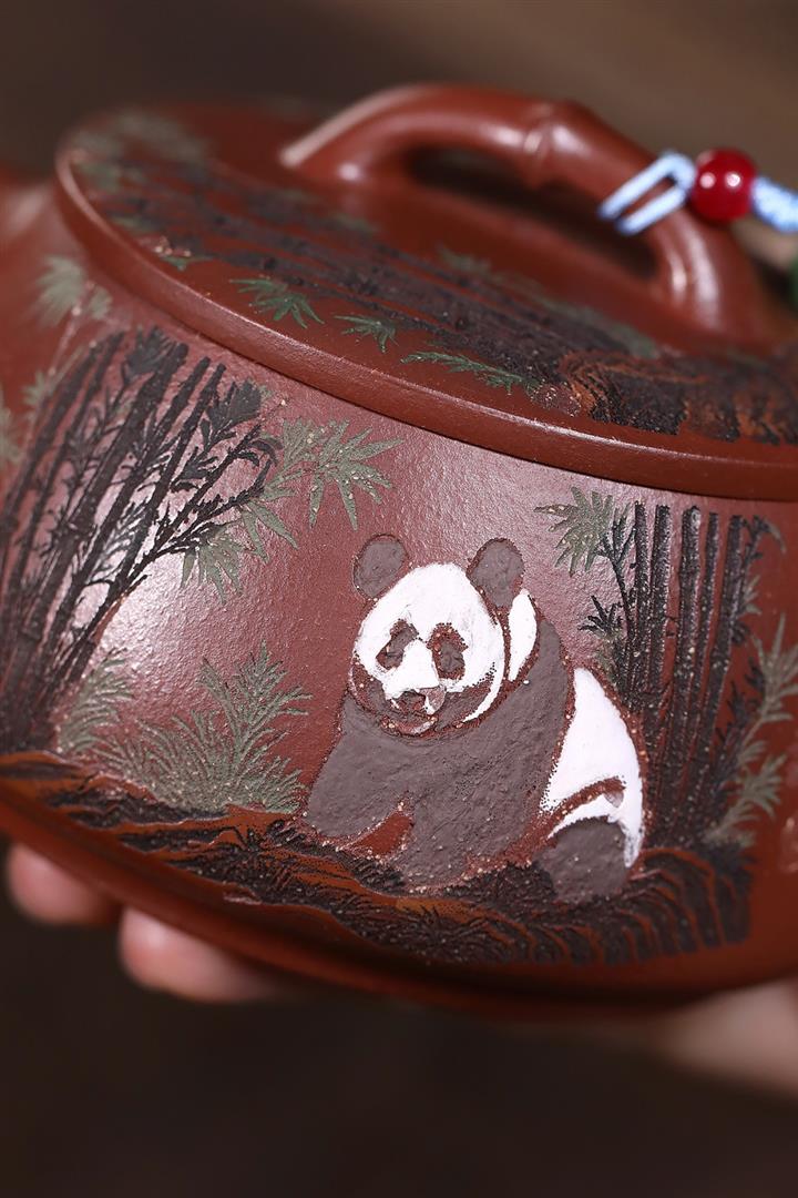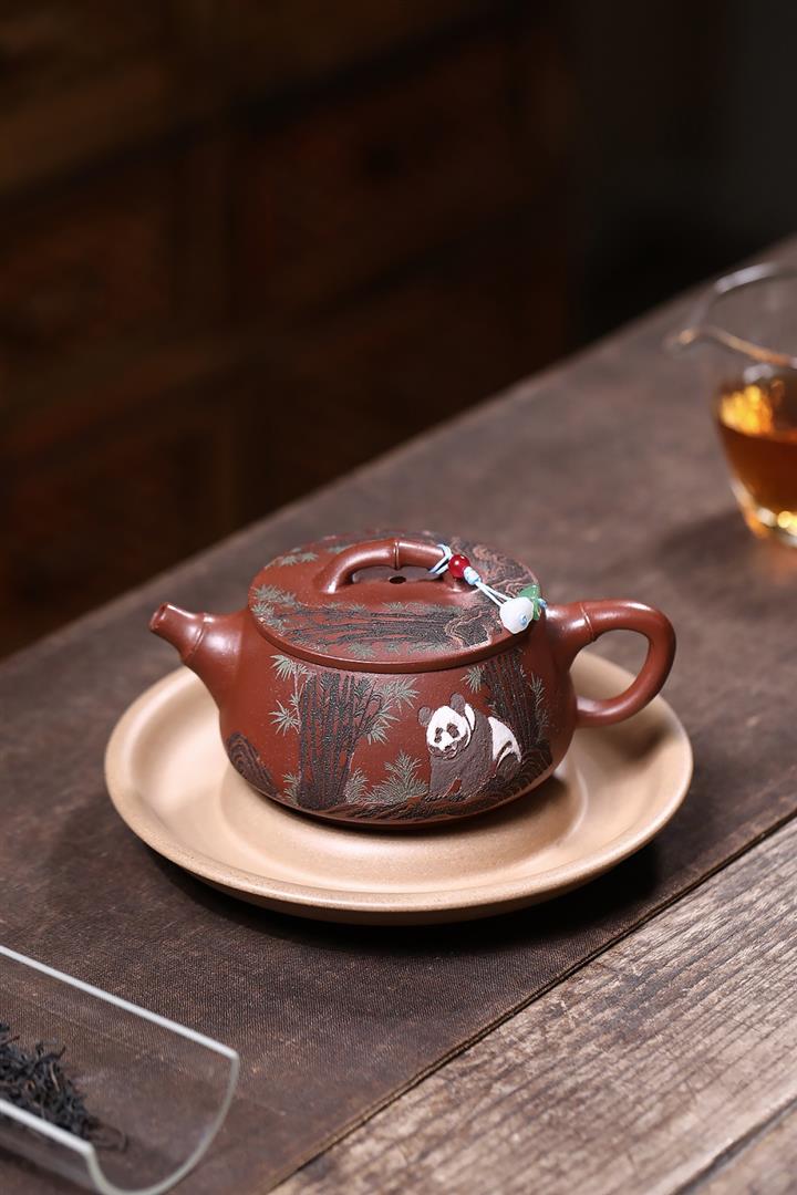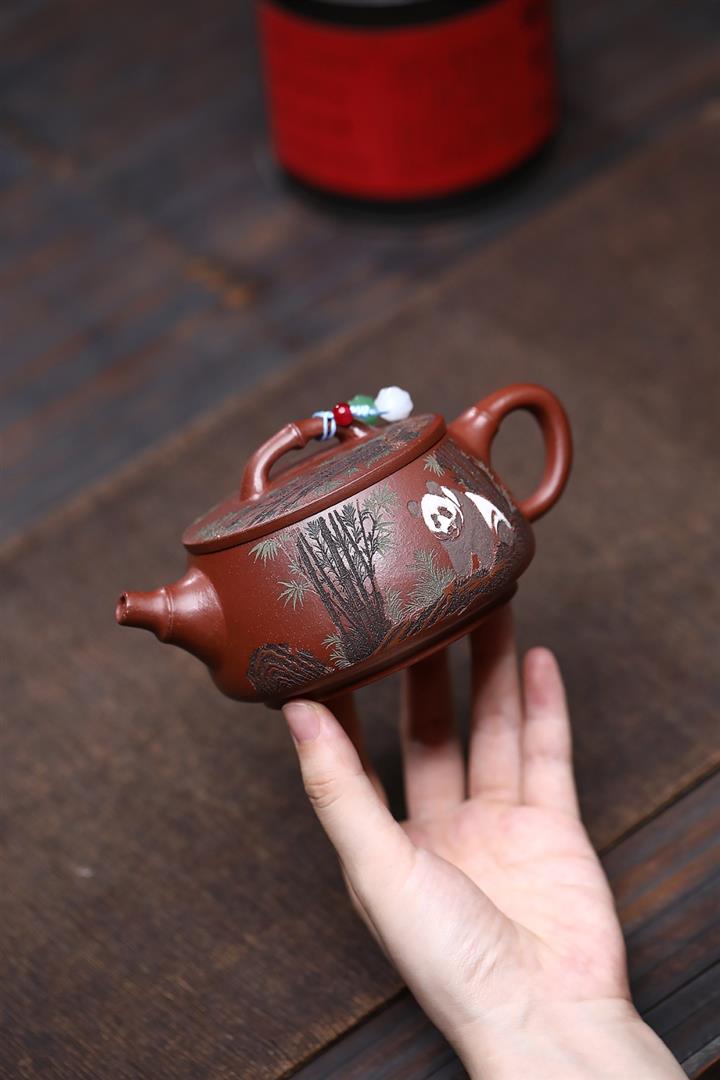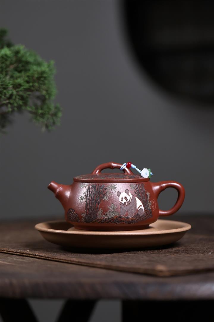 原礦紅降坡熊貓漢瓦茶壺POT7806