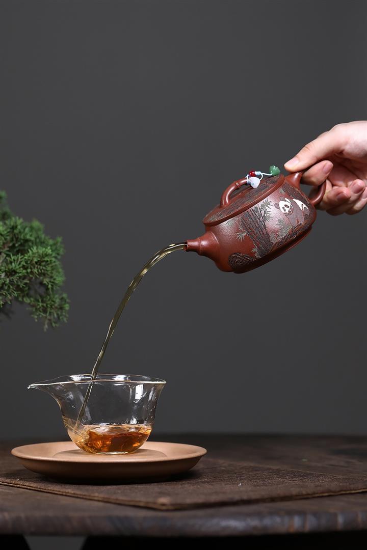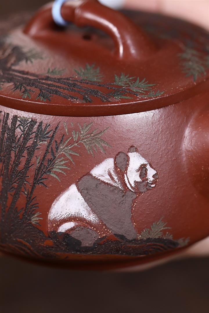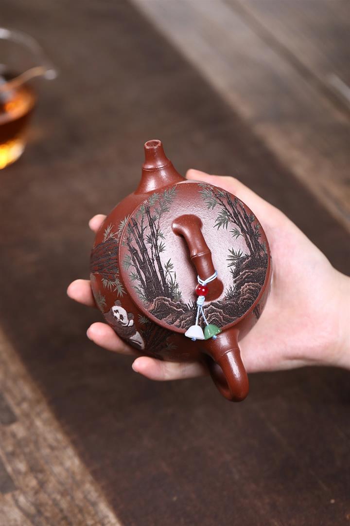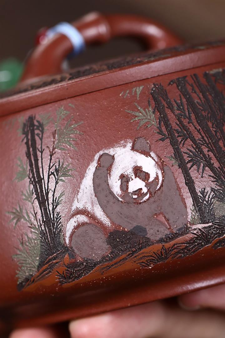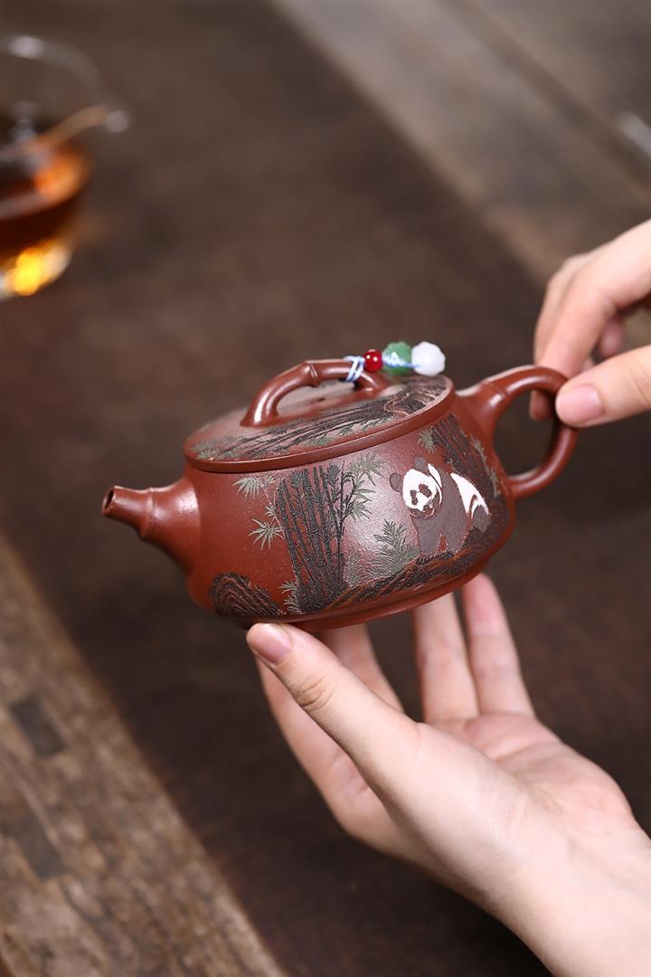 原礦紅降坡熊貓漢瓦茶壺POT7806