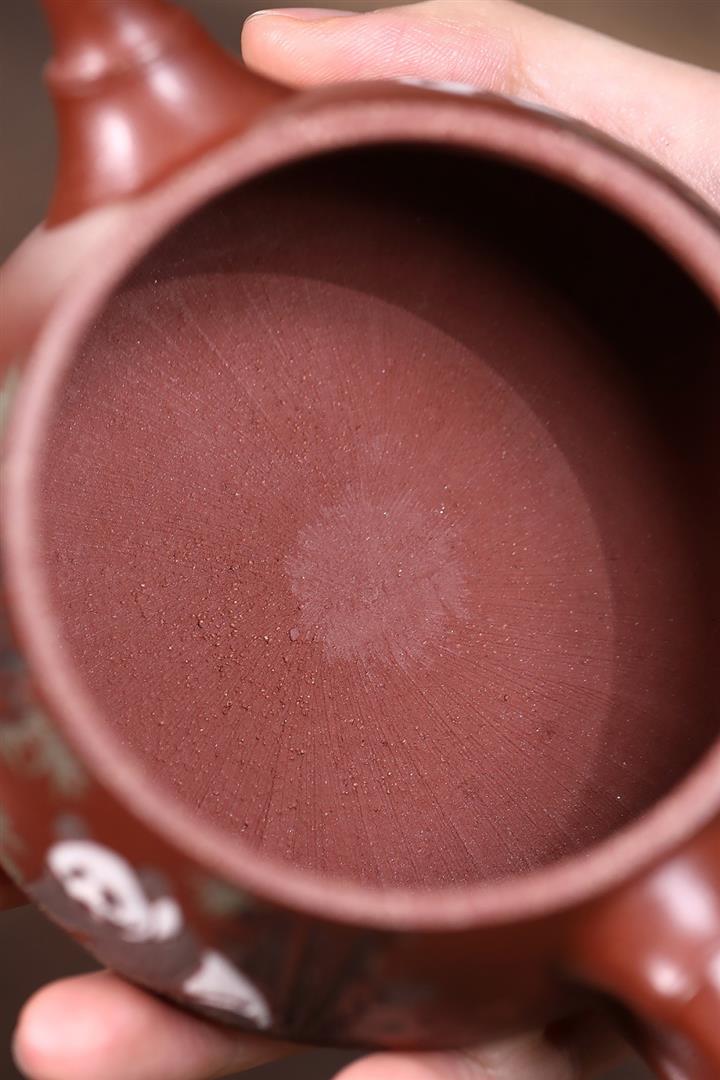 【泥料特點】砂土氣重,似淳實農民,日久使用,漸露鋒芒,養成變化,溫潤莊重。紫砂是壹種雙重氣孔結構的多孔性材質,氣孔微細,密度高。用紫砂壺沏茶,不失原味,且香不渙散,得茶之真香真味。紫砂使用越久,壺身色澤越發光亮照人,氣韻溫雅。紫砂壺長久使用器身會因撫摸擦拭,變得越發溫潤光澤。