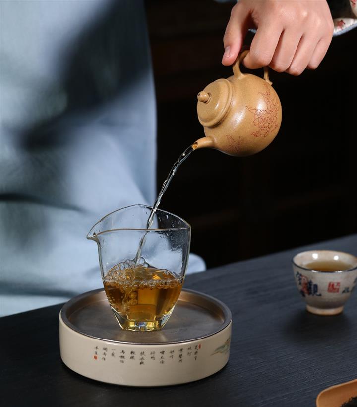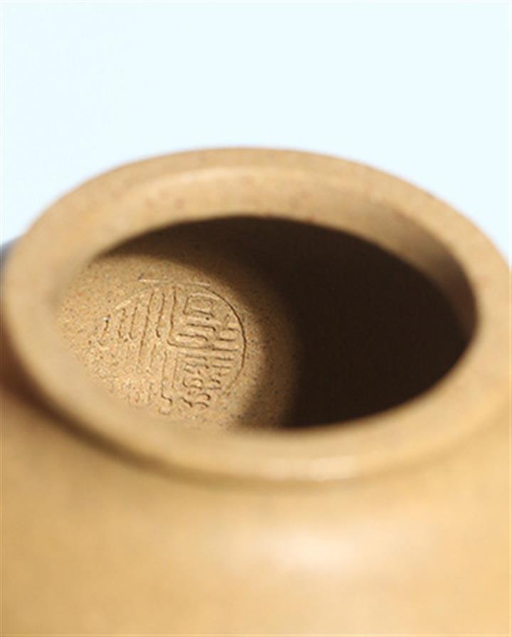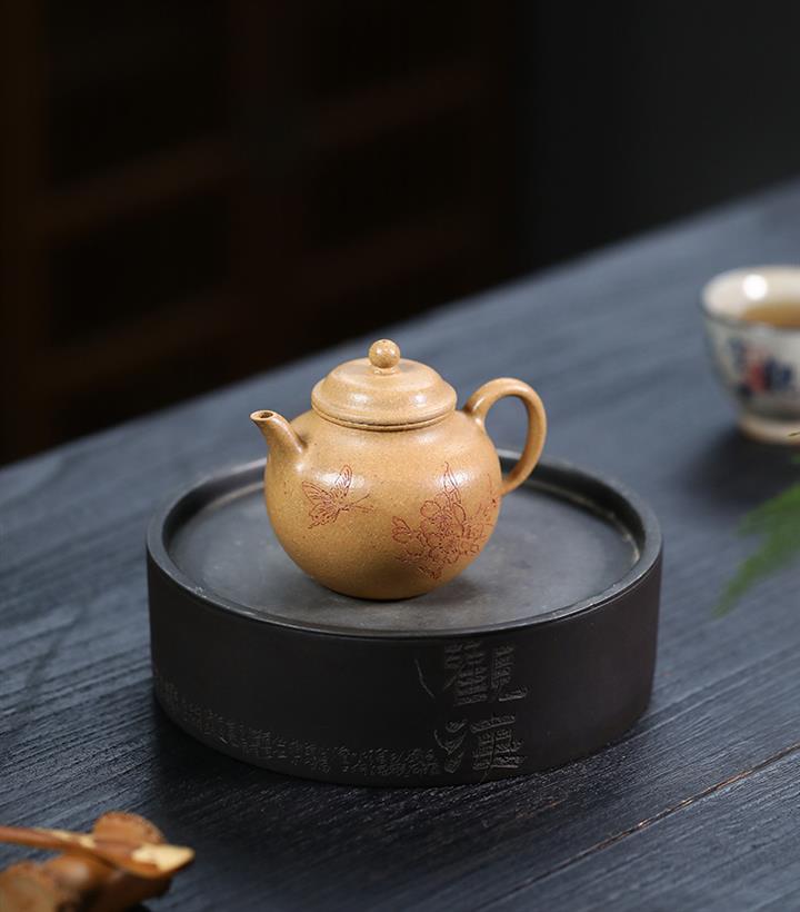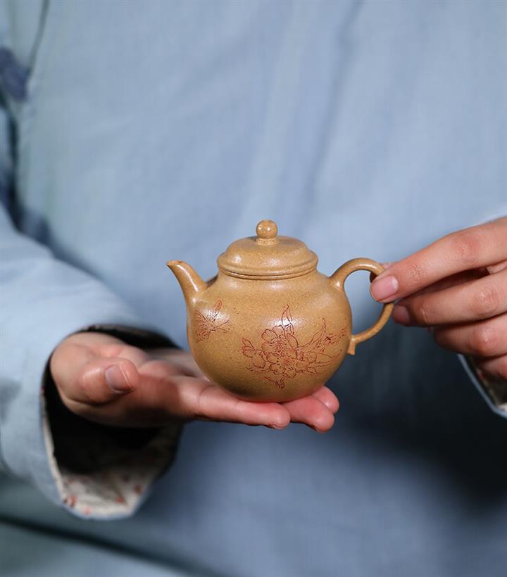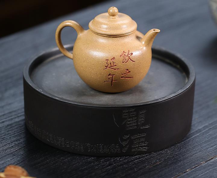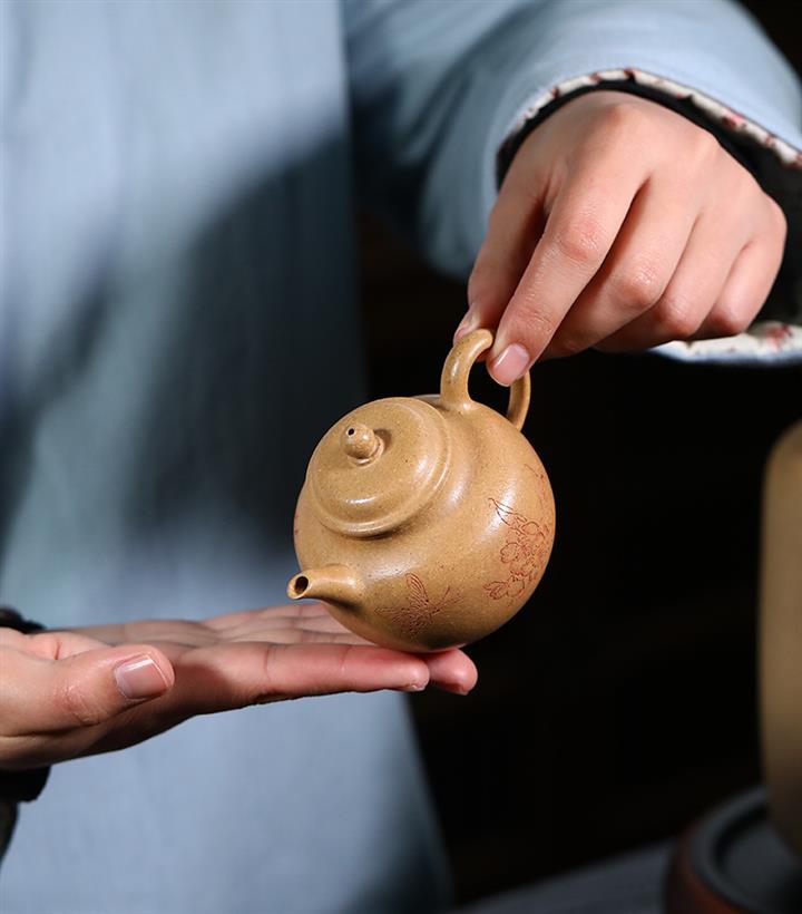 【泥料特點】砂土氣重,似淳實農民,日久使用,漸露鋒芒,養成變化,溫潤莊重。紫砂是壹種雙重氣孔結構的多孔性材質,氣孔微細,密度高。用紫砂壺沏茶,不失原味,且香不渙散,得茶之真香真味。紫砂使用越久,壺身色澤越發光亮照人,氣韻溫雅。紫砂壺長久使用器身會因撫摸擦拭,變得越發溫潤光澤。